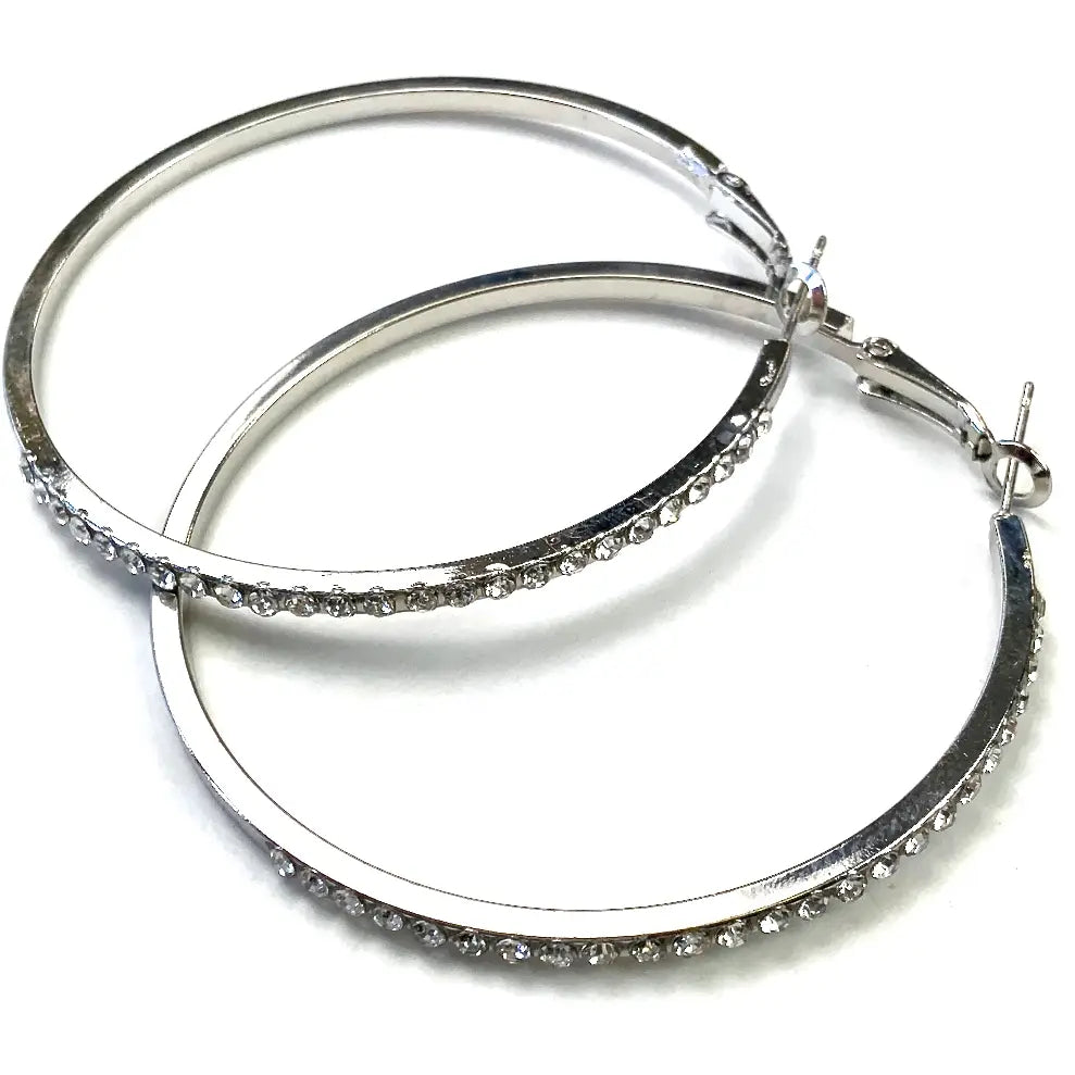 Rhinestone Silver Hoop Earrings