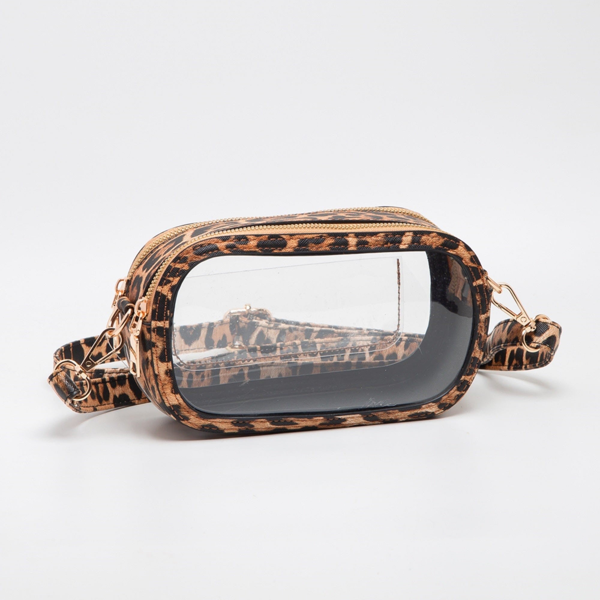 Stay stylish while keeping it stadium- and event-approved with our Leopard Print Clear Crossbody Bag. Designed with a bold animal print trim and strap, this bag adds a touch of wild chic to any outfit while meeting clear bag requirements for concerts, sporting events, and festivals.