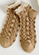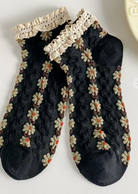 Lace Trim Floral Cable Knit Cotton Ankle Socks