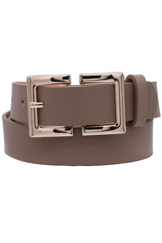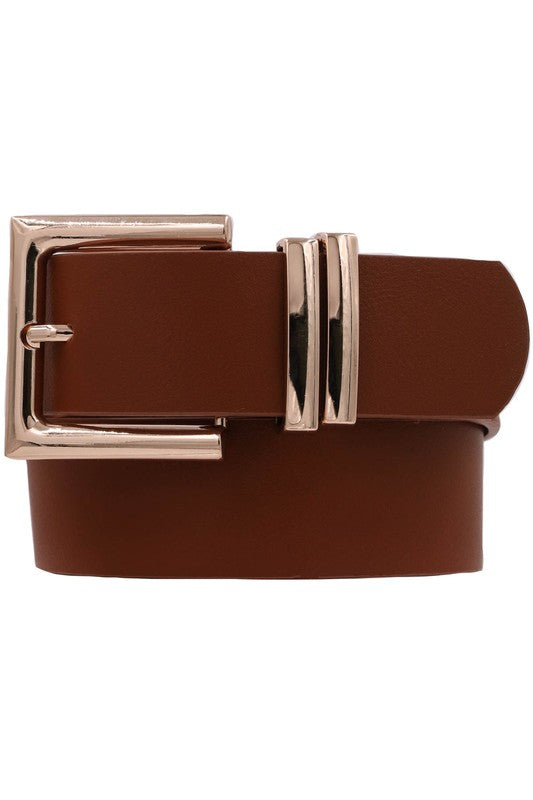 Squared Faux Leather Buckle Double Loop Belt