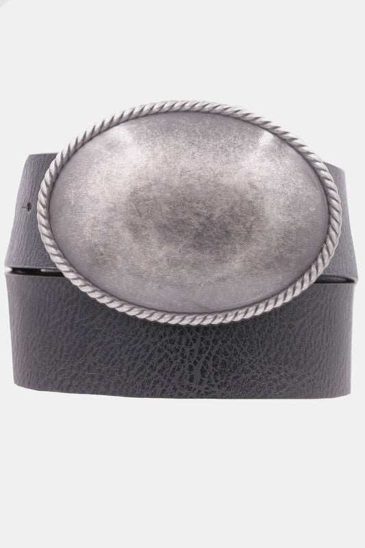 Metal Rope Trimmed Simple Oval Buckle Belt