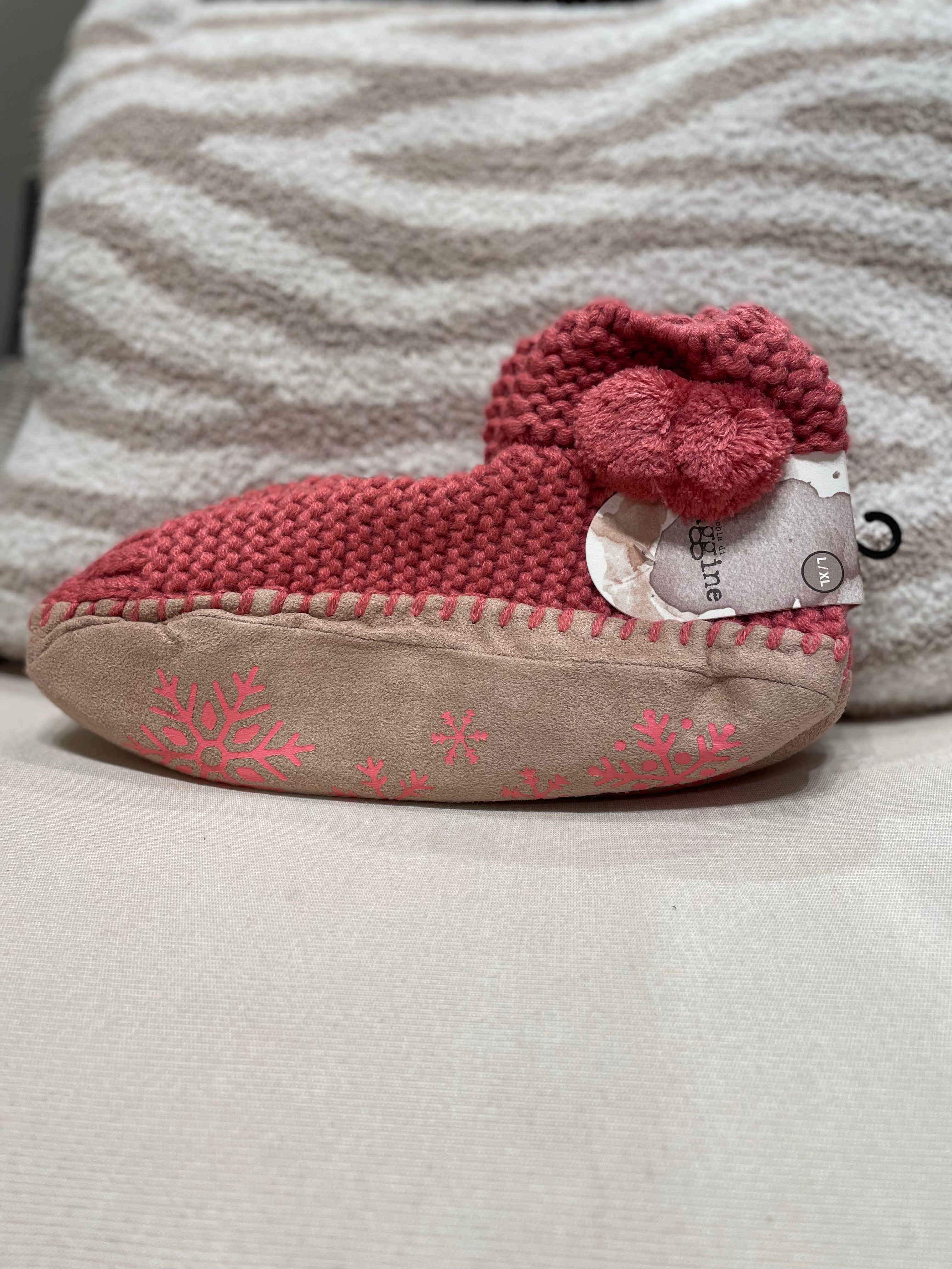 Hand Knitted Garter Stitched Boot with Pom Pom
