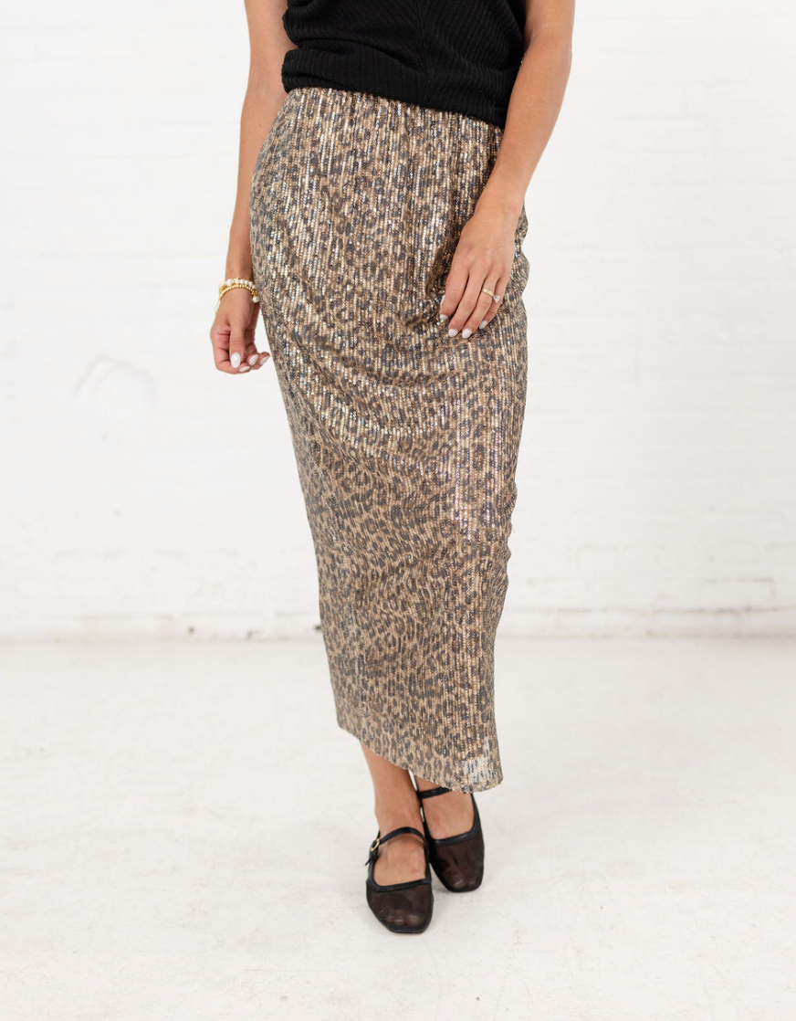 Cheetah Sequin Midi Skirt