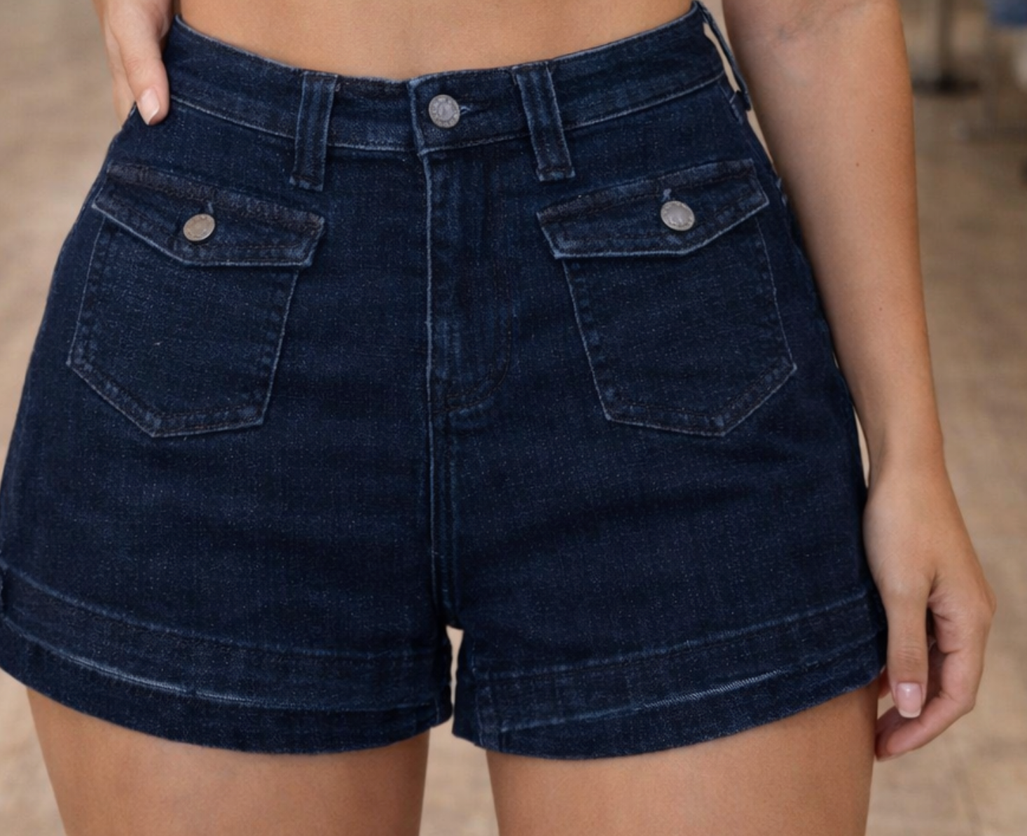 A flattering update to your everyday denim. These high-rise shorts feature a structured silhouette with utility-inspired pocket details for a polished yet casual look.