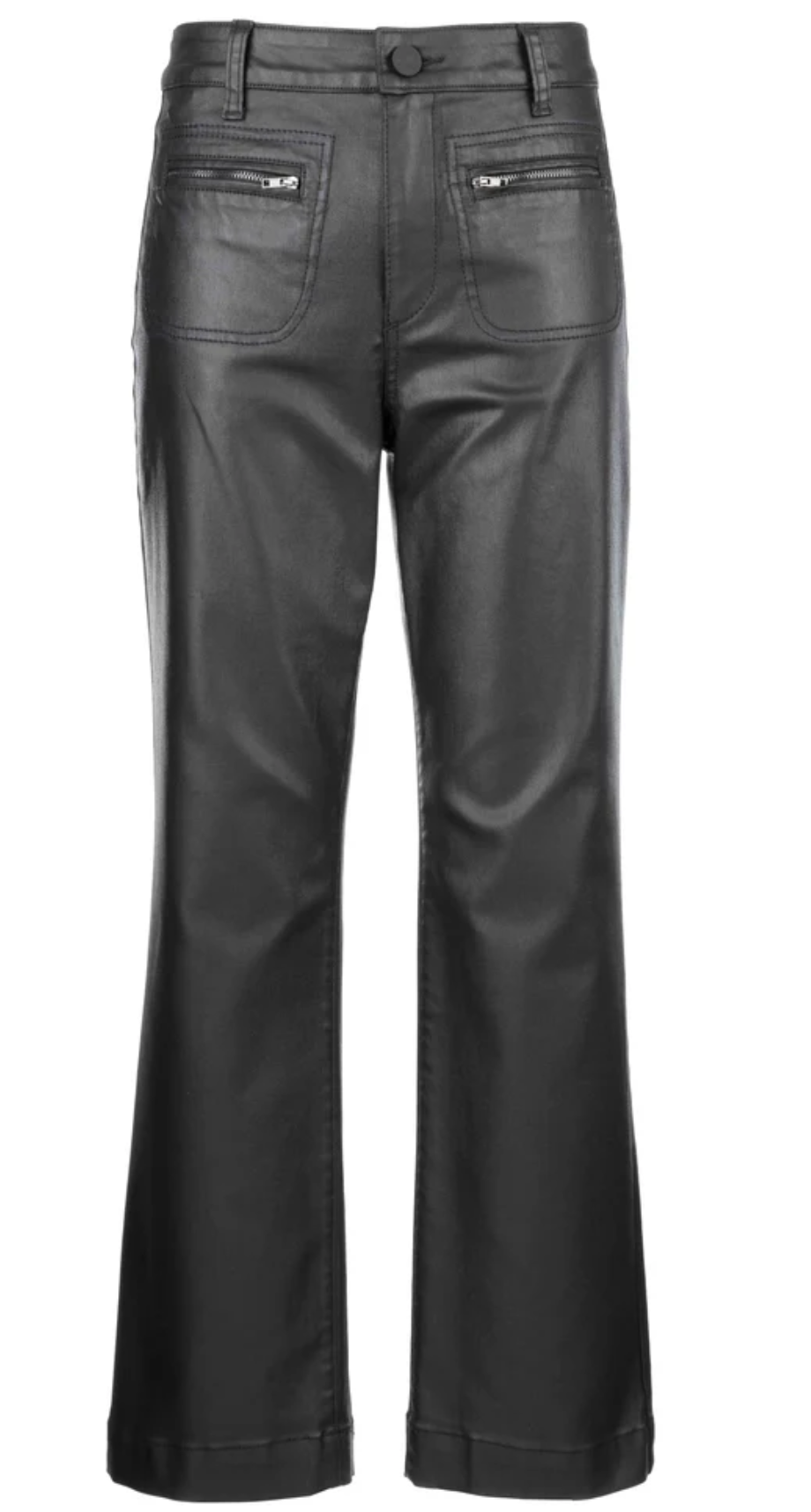 Edgy, chic, and endlessly versatile — our Faux Leather Flare Pants bring a modern twist to a classic silhouette. Designed in a soft, flexible faux leather with a subtle sheen, these pants offer a flattering mid-rise fit, statement front patch pockets, and zip-accent detailing that adds just the right amount of attitude.