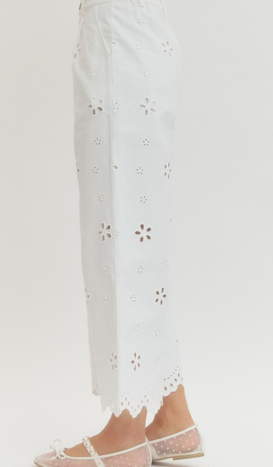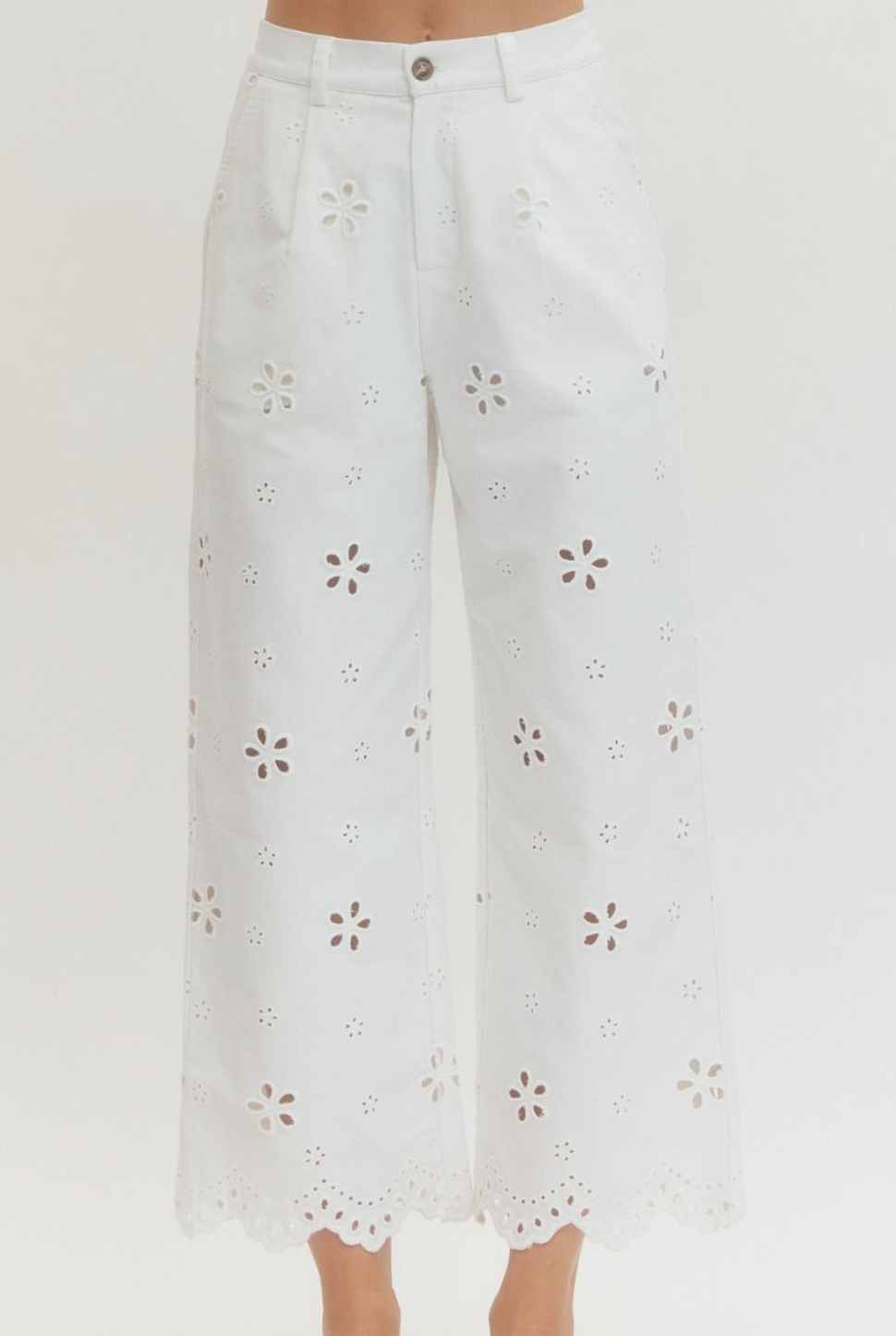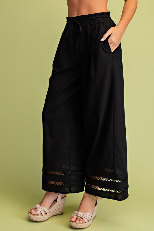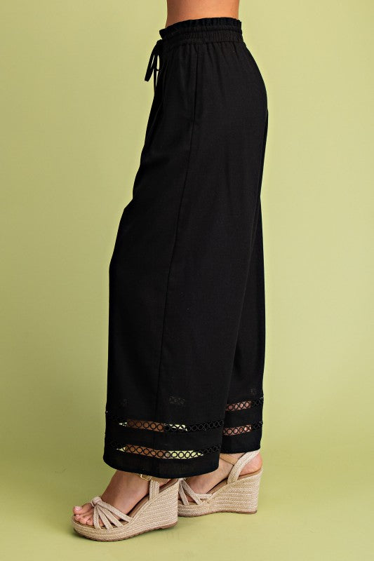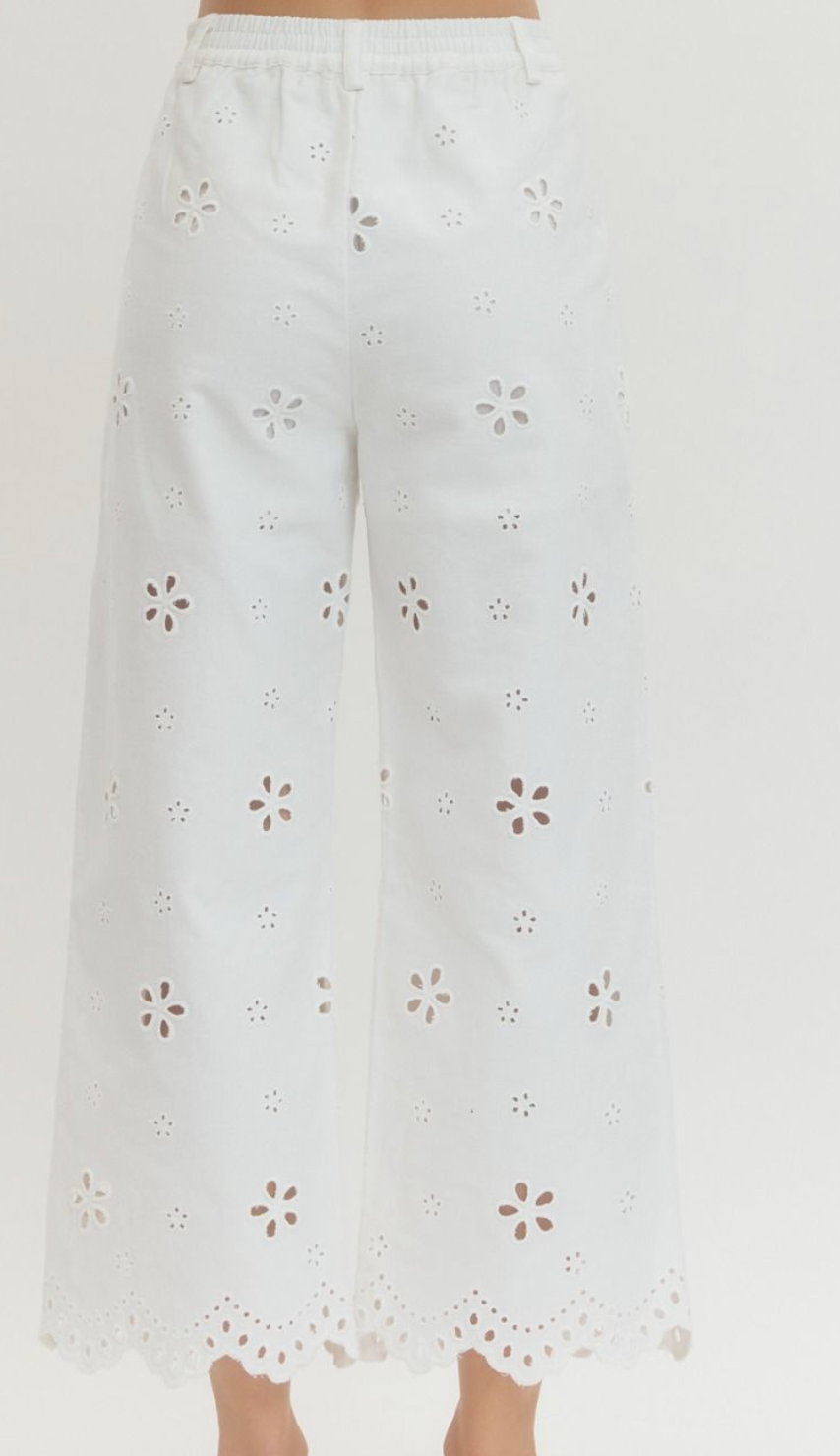 Eyelet Embroidered Wide-Leg Pants