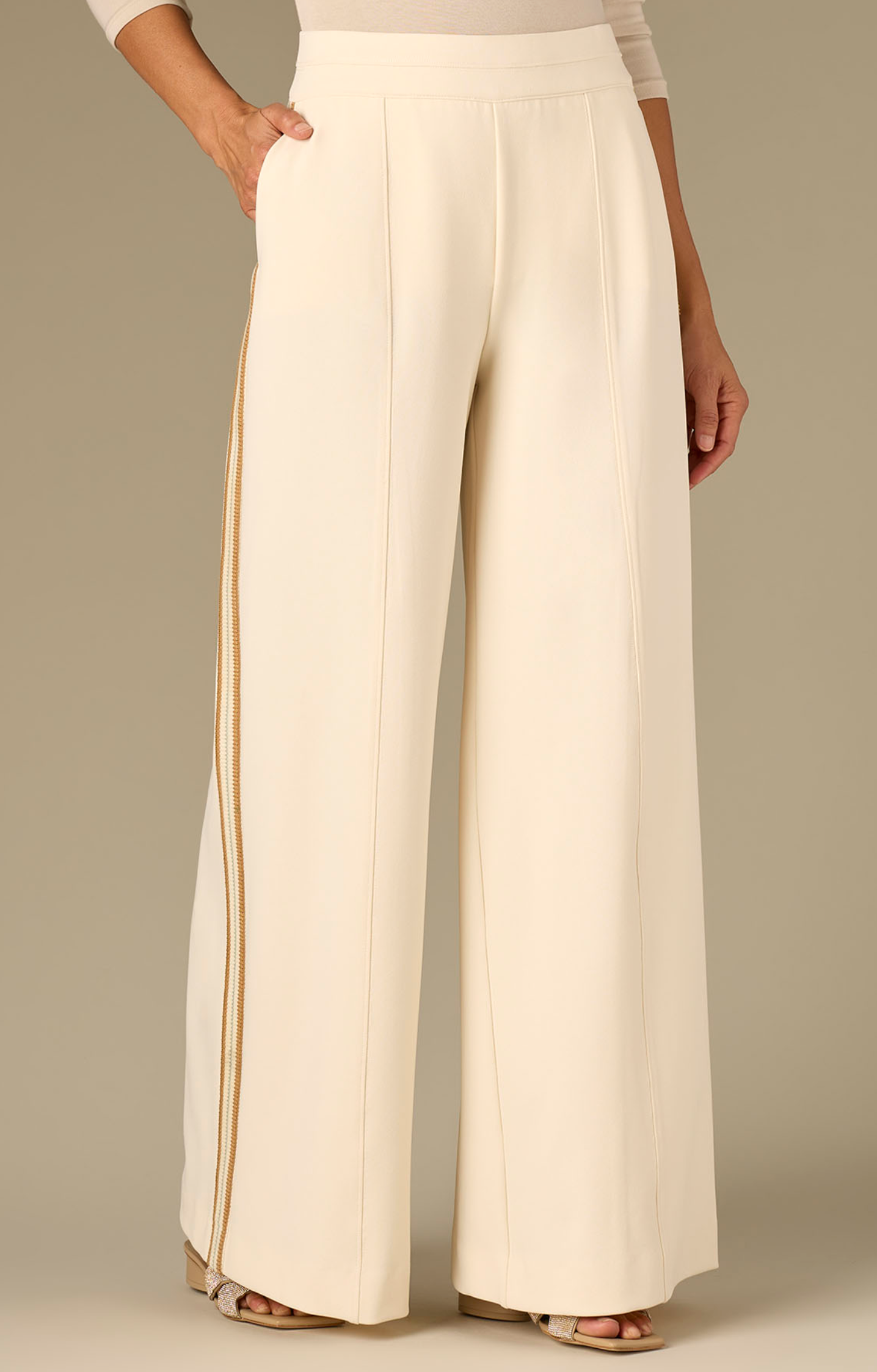 PINTUCK PALAZZO GLIDER W/ STRIPE TRIM
