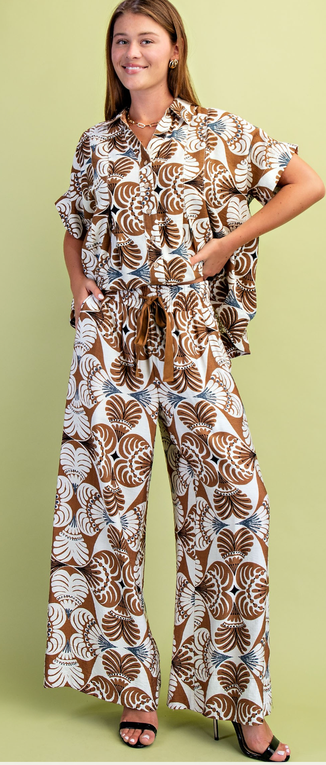 Palm Tree Embo Detail Linen Pants