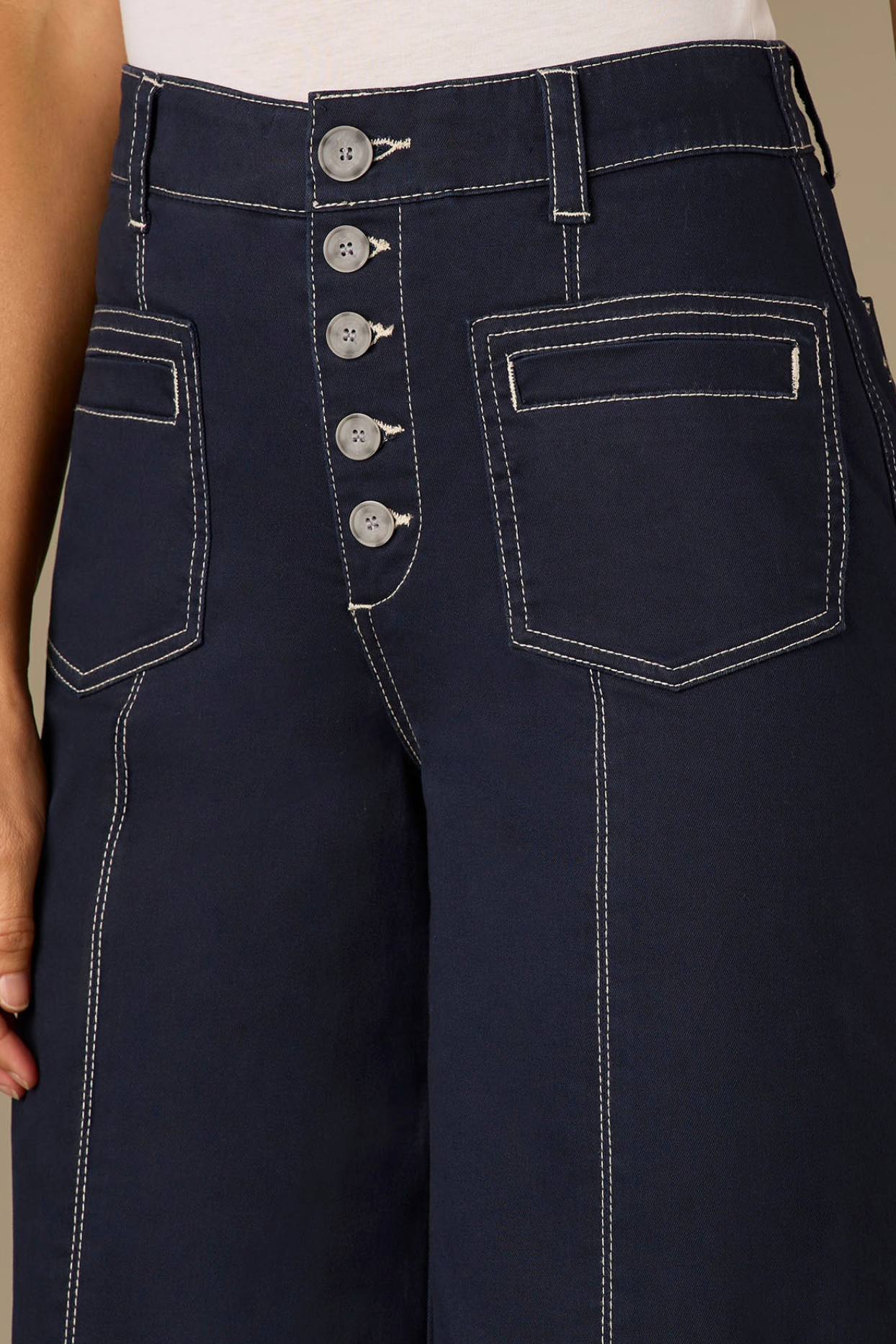 Skyrise Button Fly Wide Leg Pants