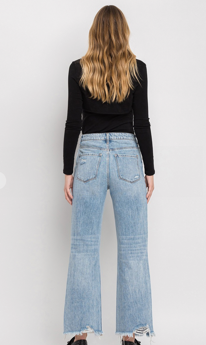 Mid Rise Ankle Straight with Fray Hem Jeans