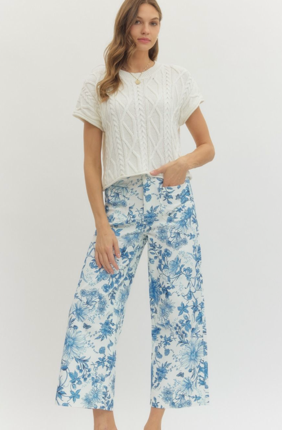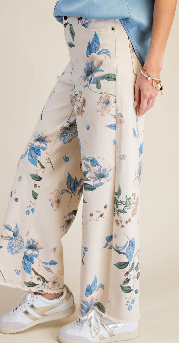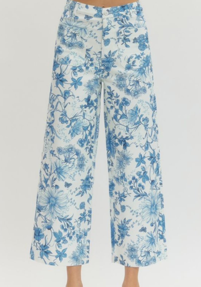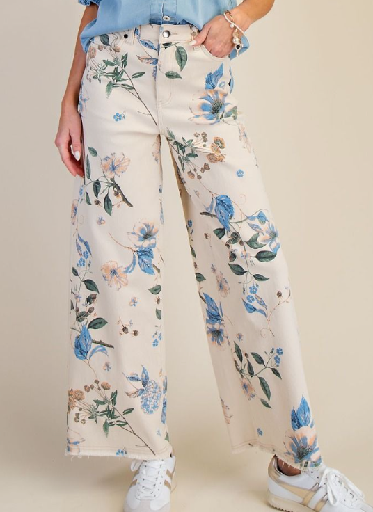 Floral print wide leg pants