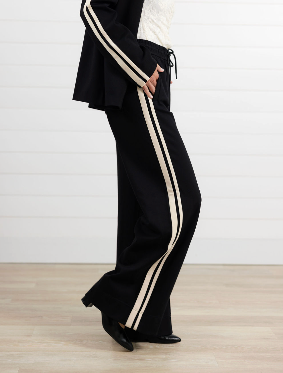 Wide Leg Side Panel Knit Pant