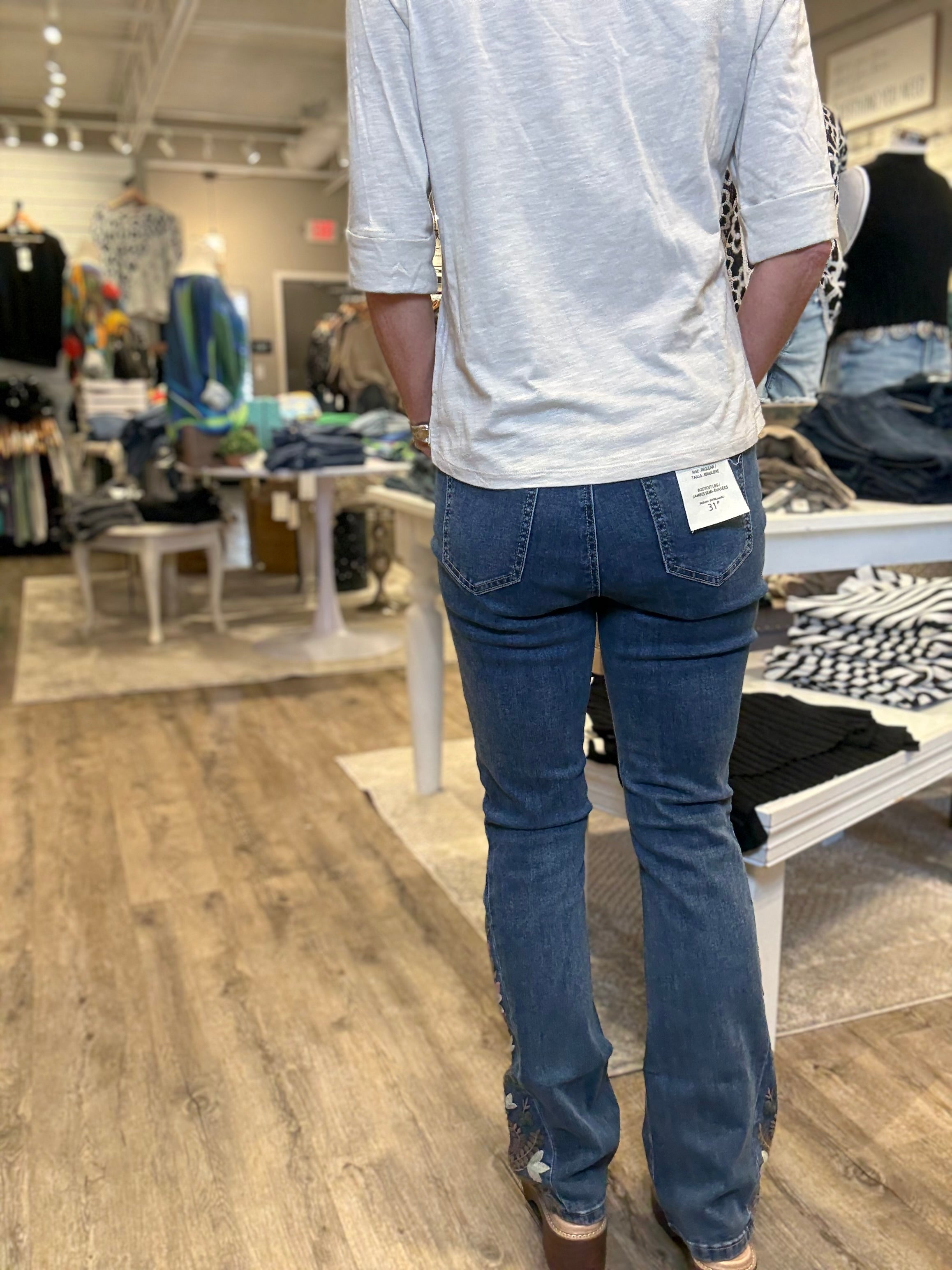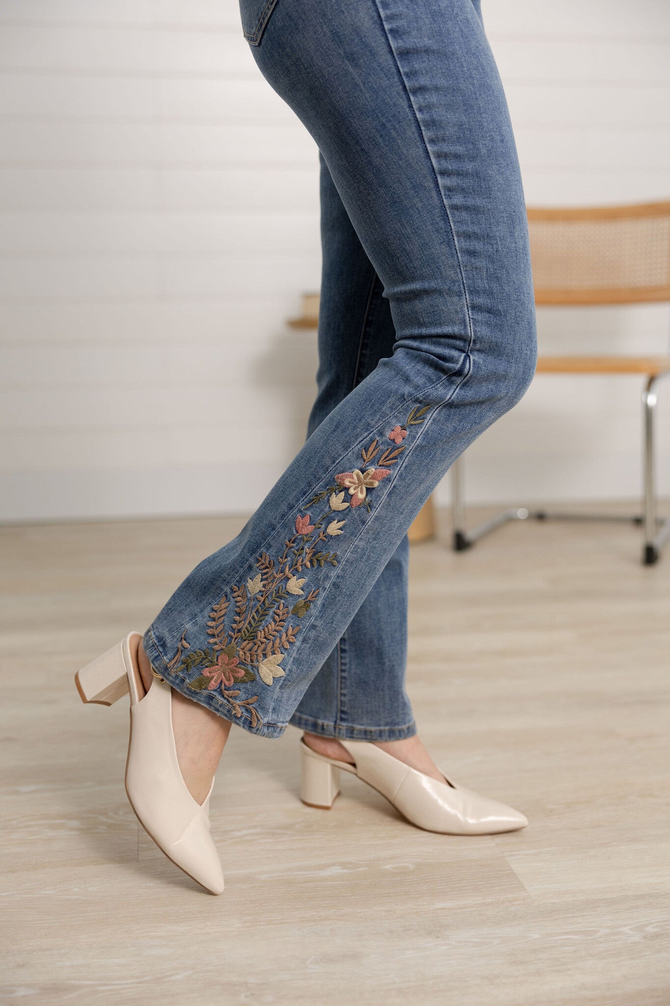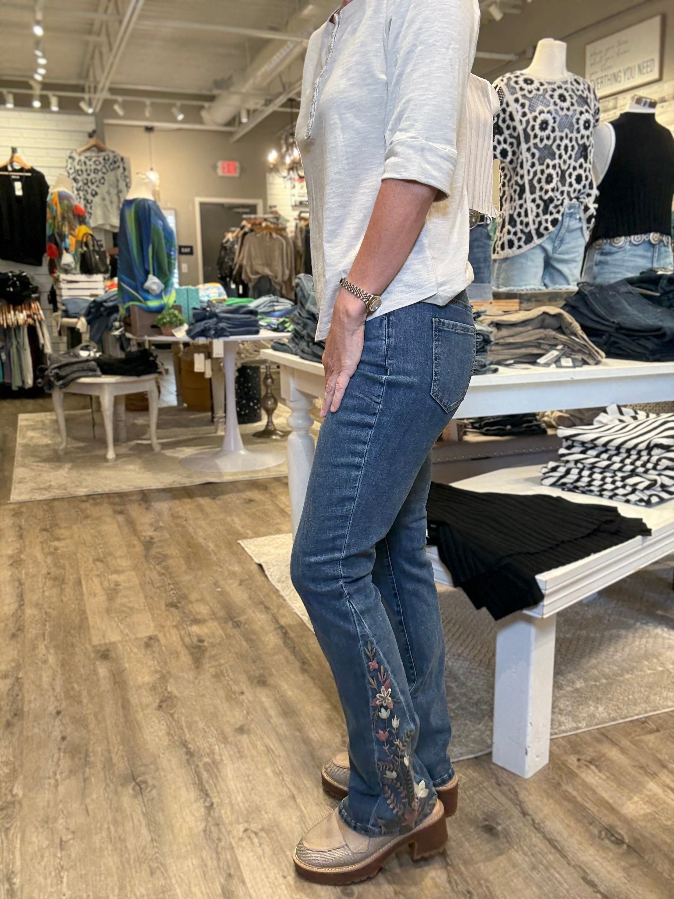 Side Embroidered Flare Denim