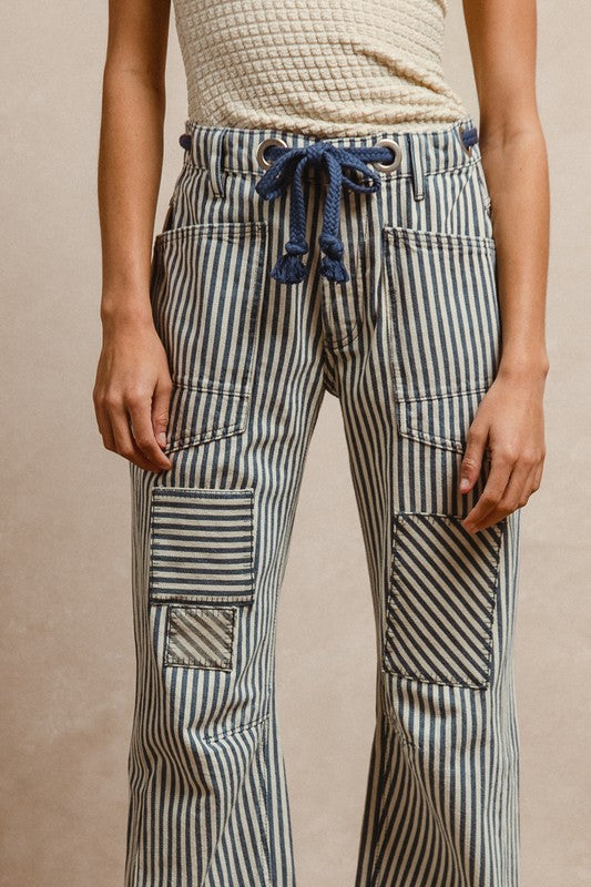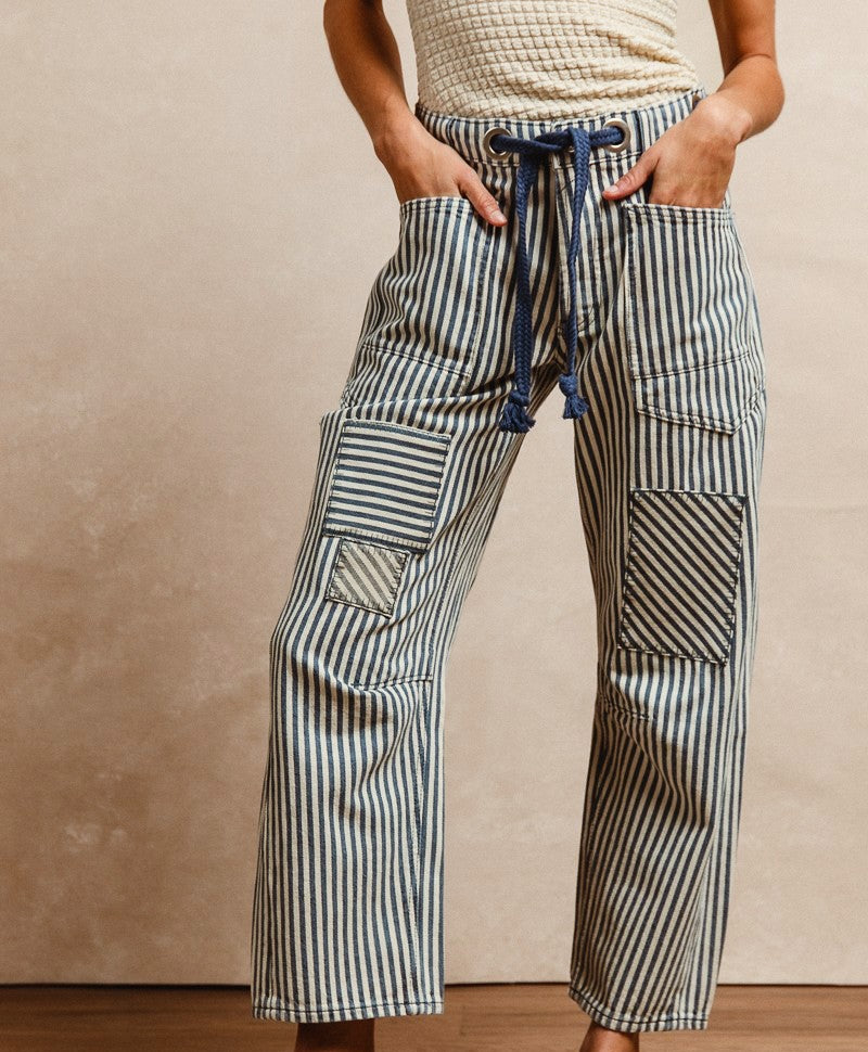Striped Patchwork Barrel Pants