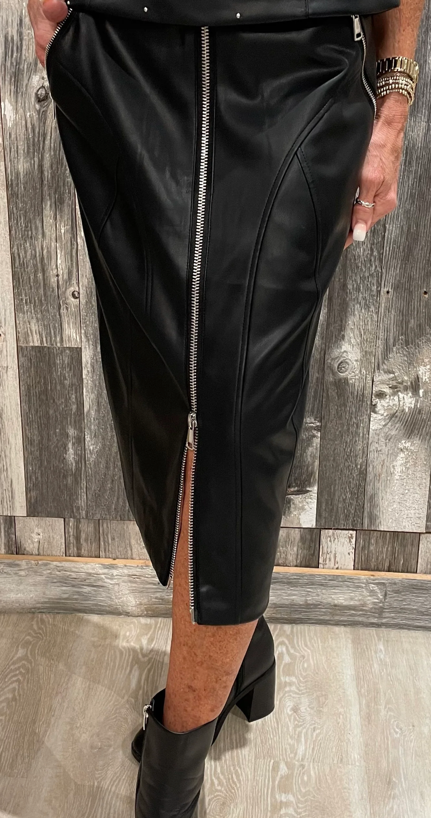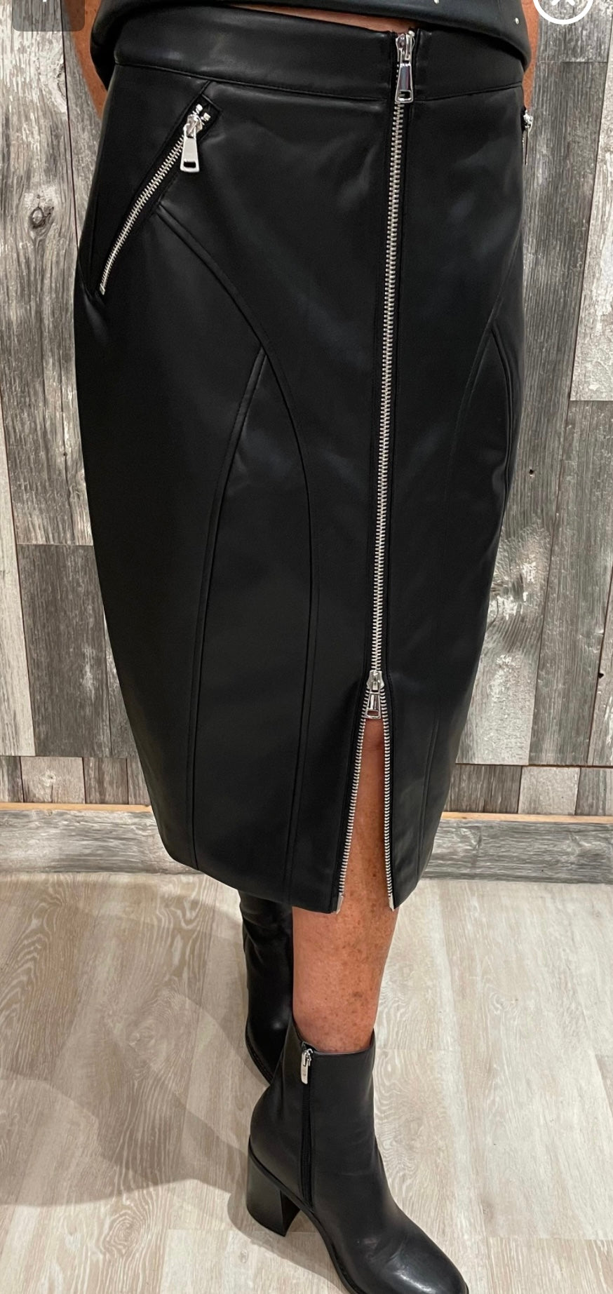 Vegan Leather Double Zip Long Skirt