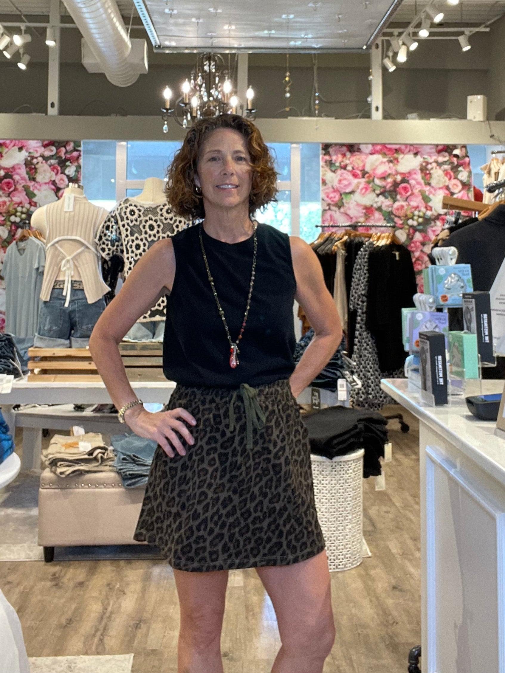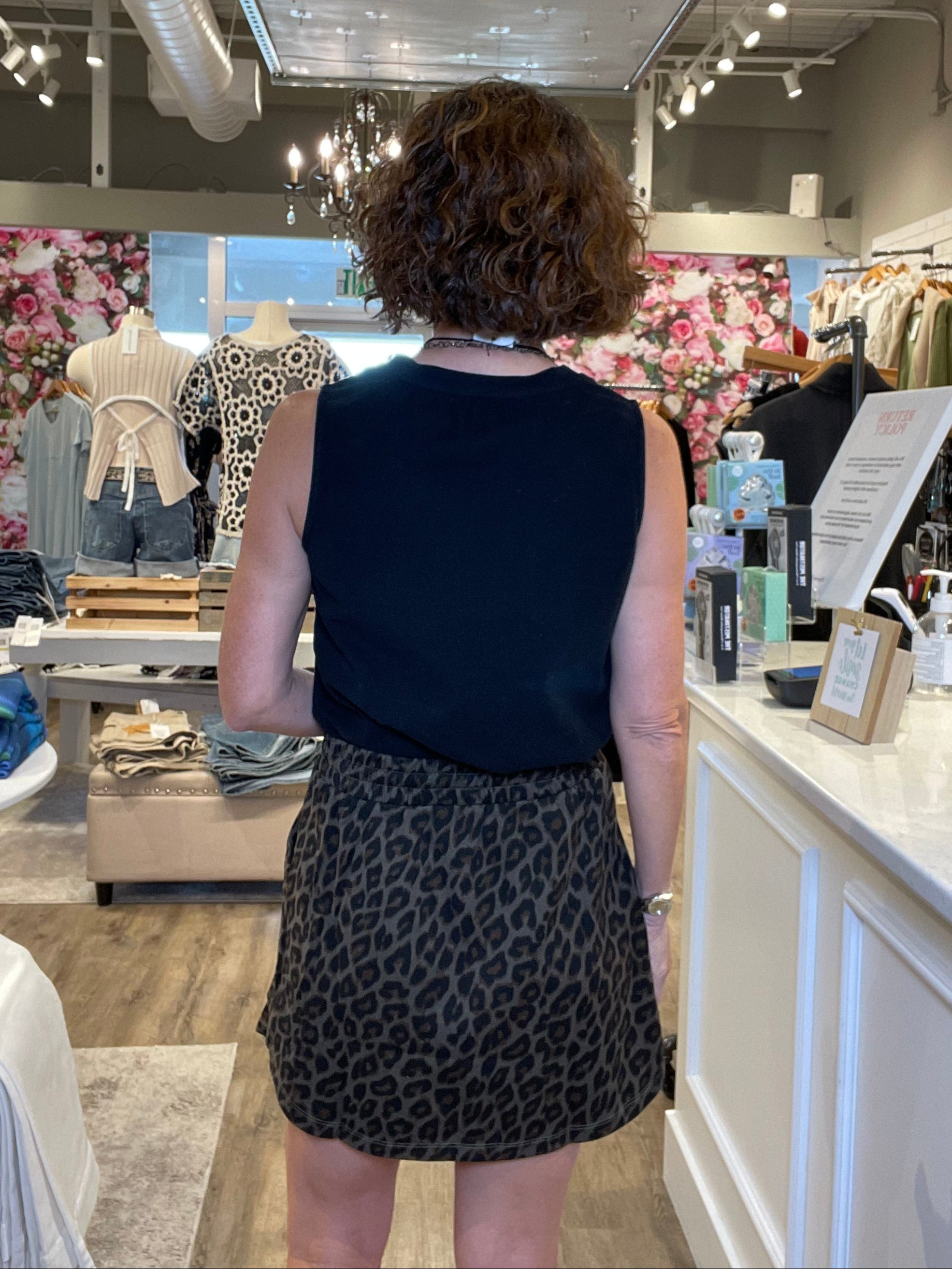 Leopard Terry Shirt Tail Hem Mini Skirt w/Tie Trim
