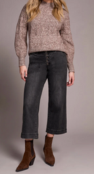Effortlessly cool and endlessly versatile, these washed black wide leg jeans are the perfect blend of comfort and style. Featuring a flattering high-rise fit, cropped leg, and exposed button-front closure, these jeans give a modern twist to a vintage-inspired silhouette. The soft denim fabric has just the right amount of stretch, making them ideal for all-day wear. Pair them with cozy sweaters or fitted tops for a timeless, elevated look.