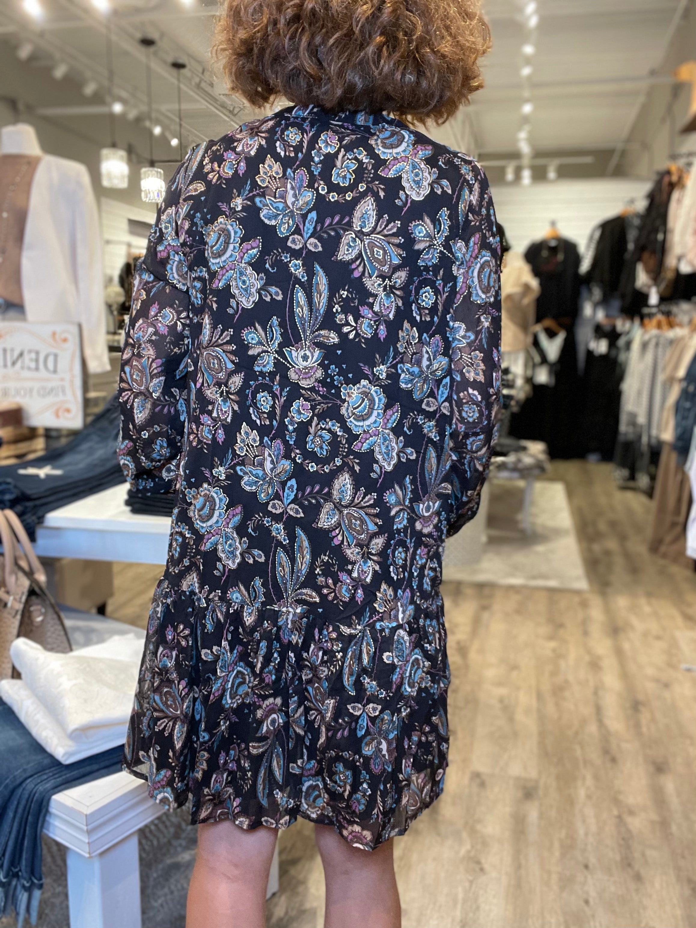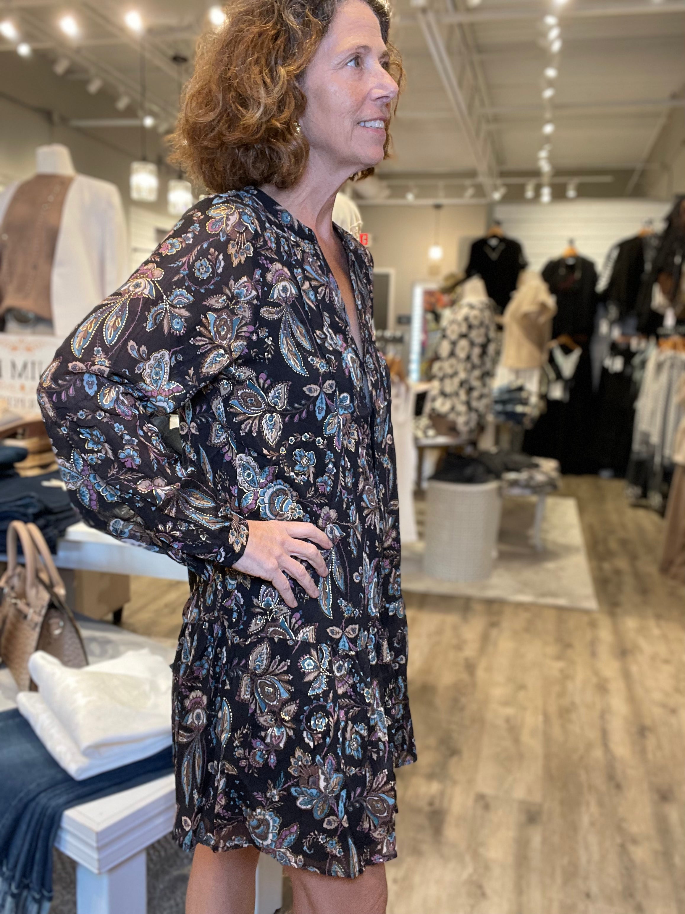 Boho Paisley Print Long-Sleeve Tiered Dress