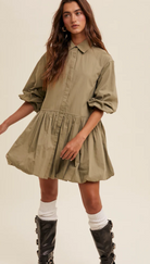 Bubble Hem Cotton Shirt Dress