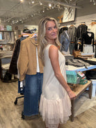 Made In Italy Tank Dress With Lace Frilled Bottom