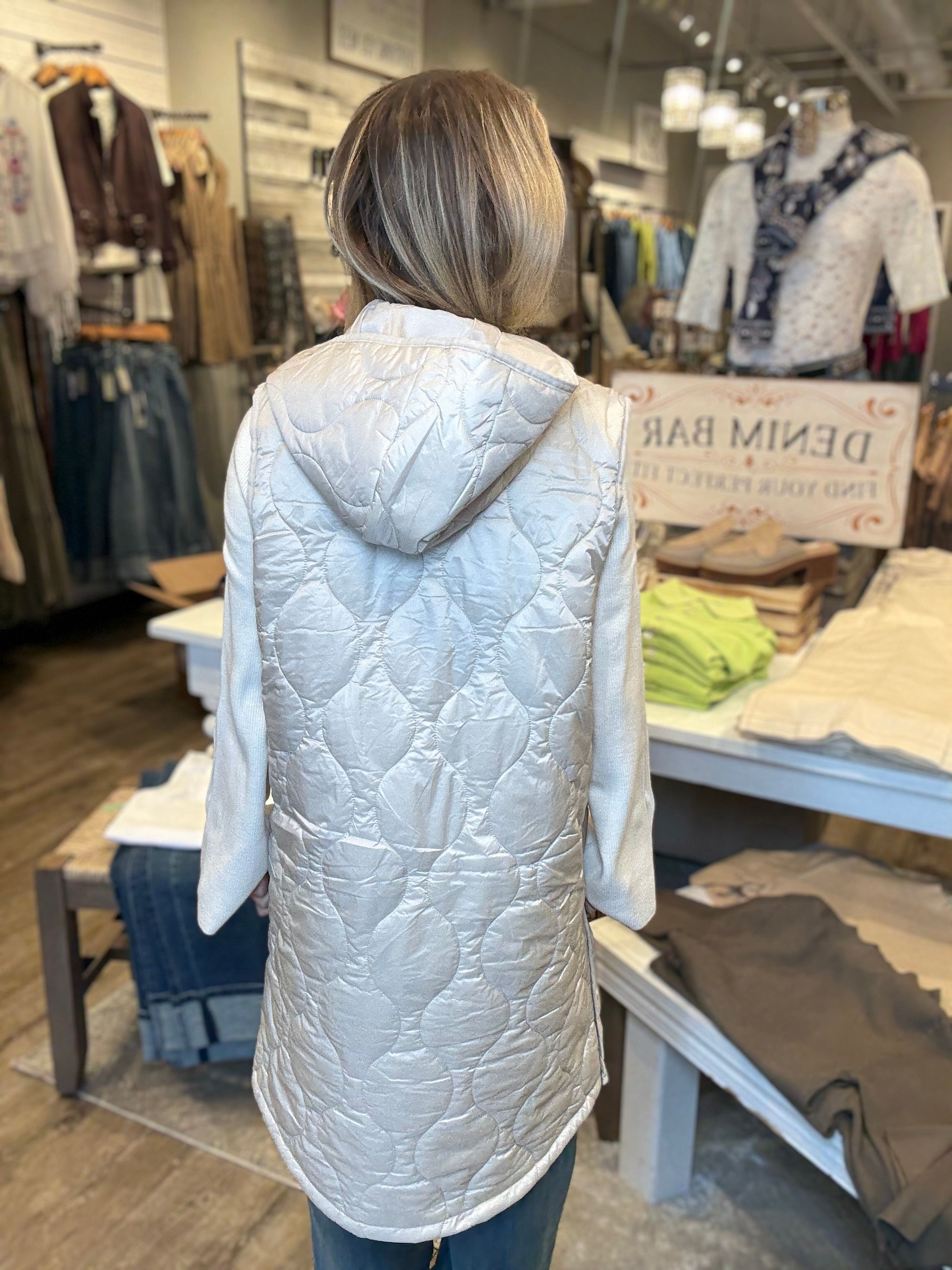Ivory Quilted Longline Hooded Vest