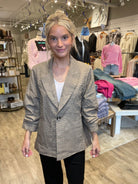 Classic Blazer Silhouette – tailored structure with a single-button closure.