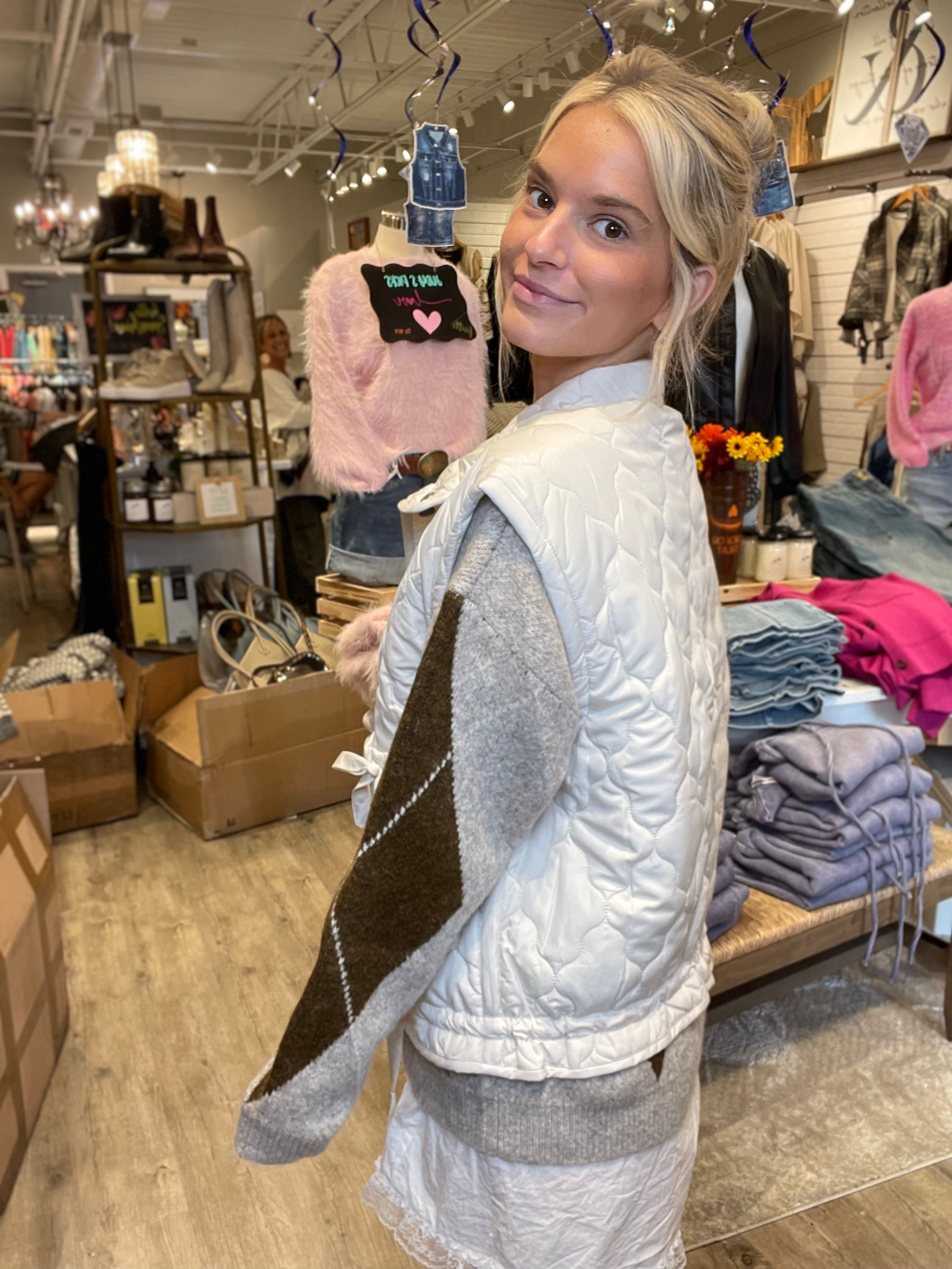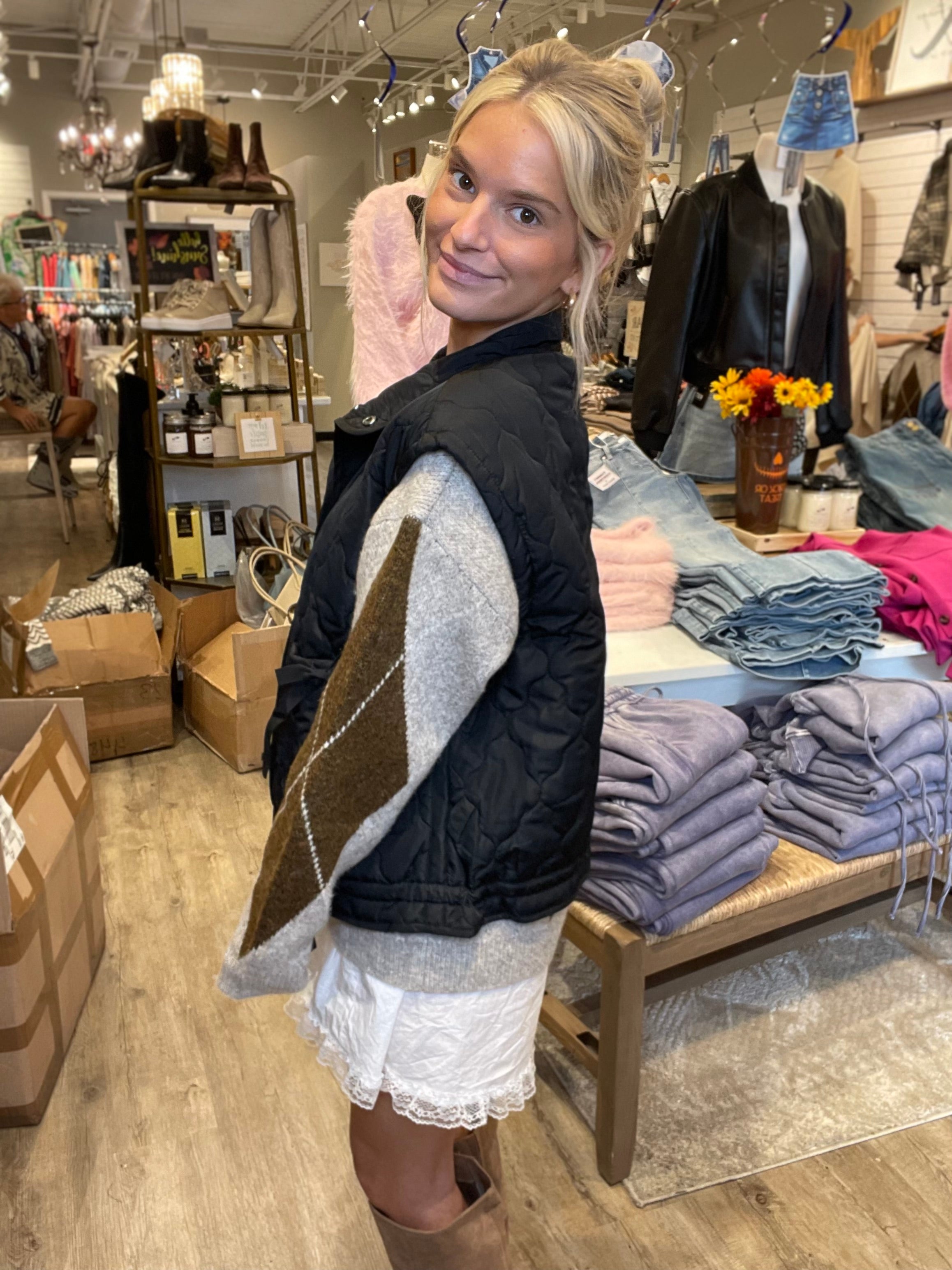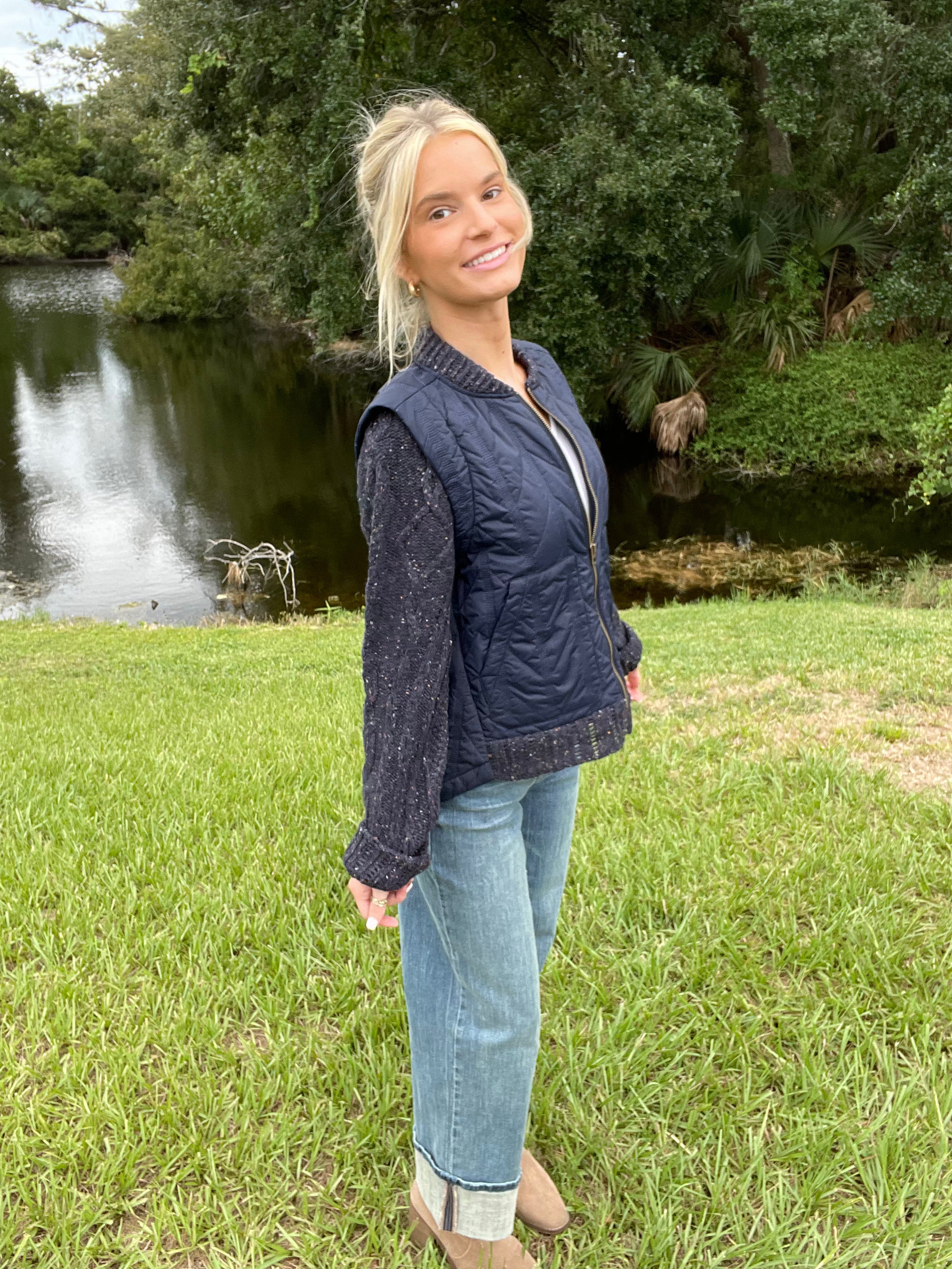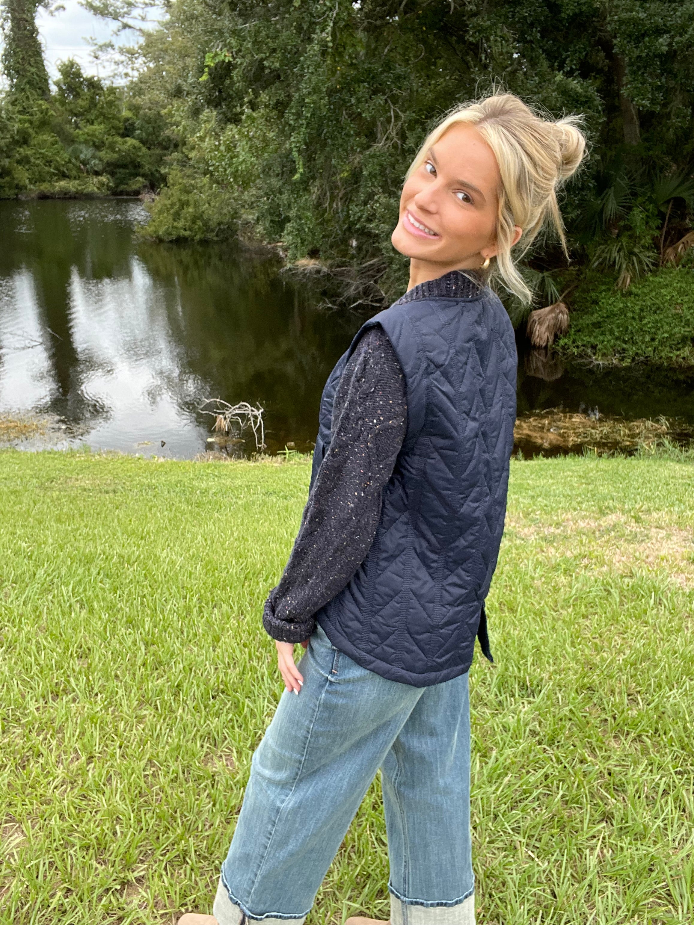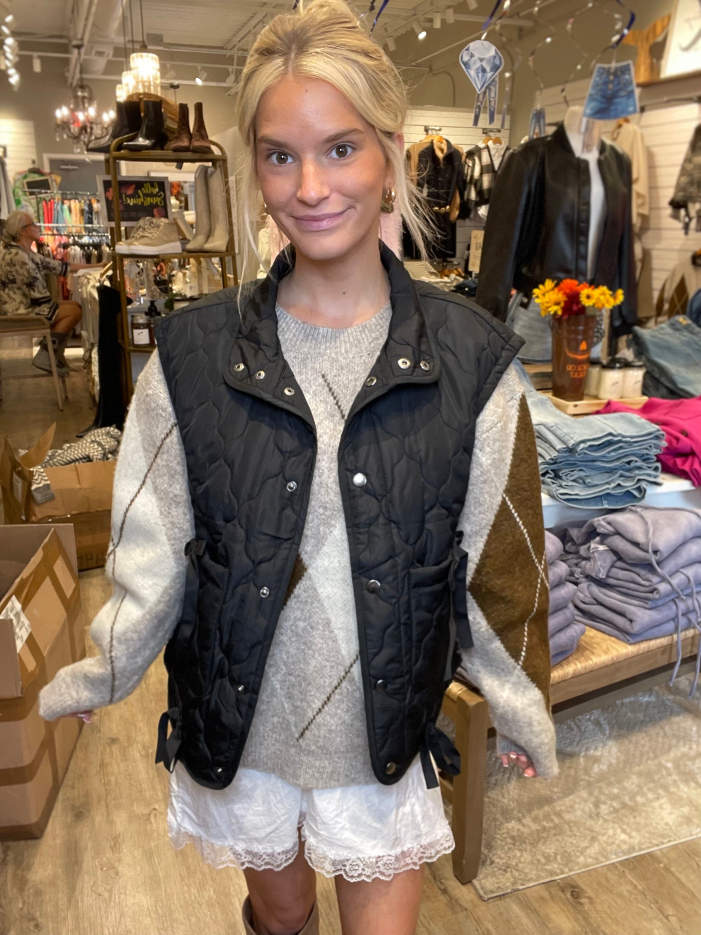 Snap Front Ribbon Quilted Pocket Vest