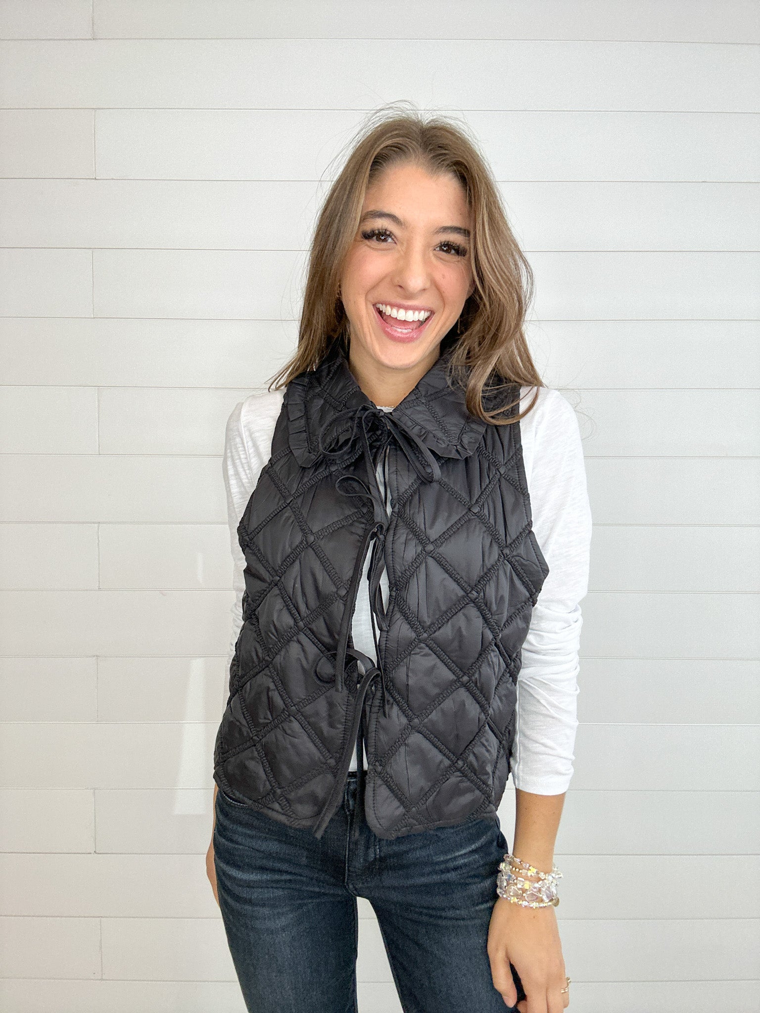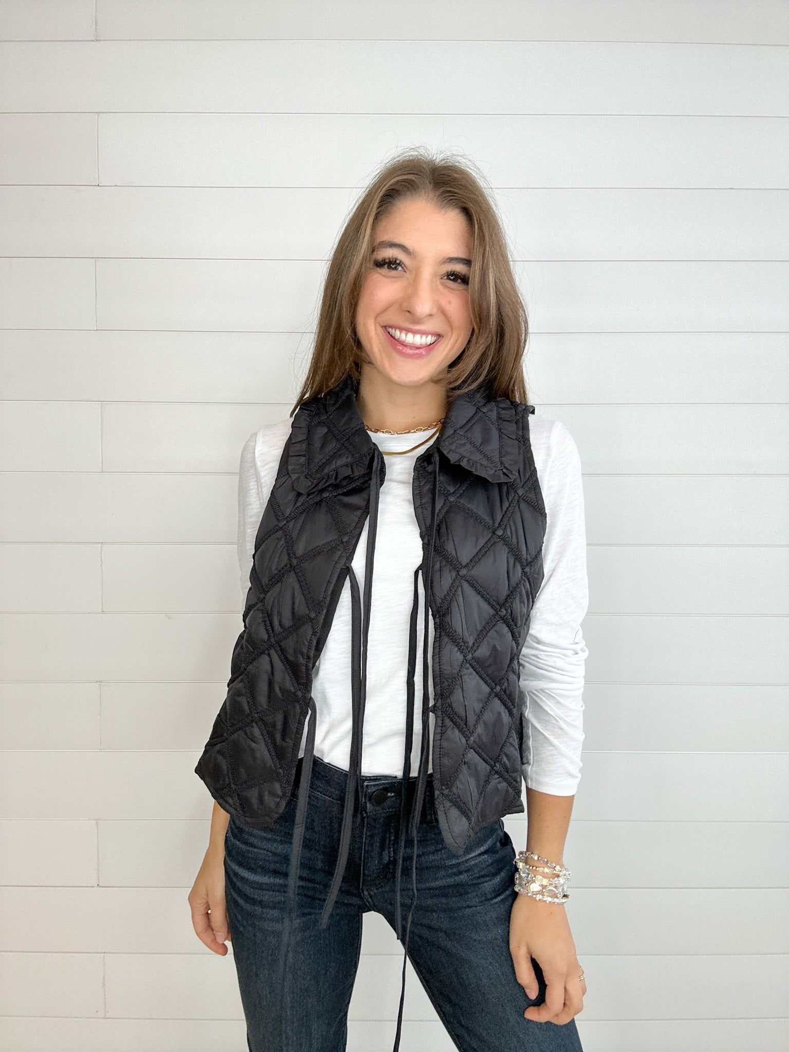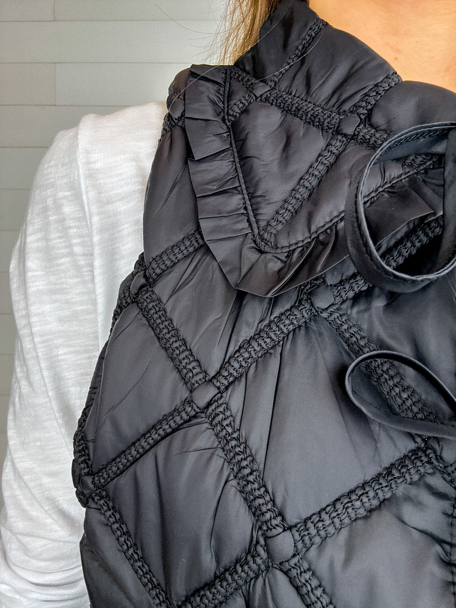 Ruffled Over-Sized Collar Quilted Vest