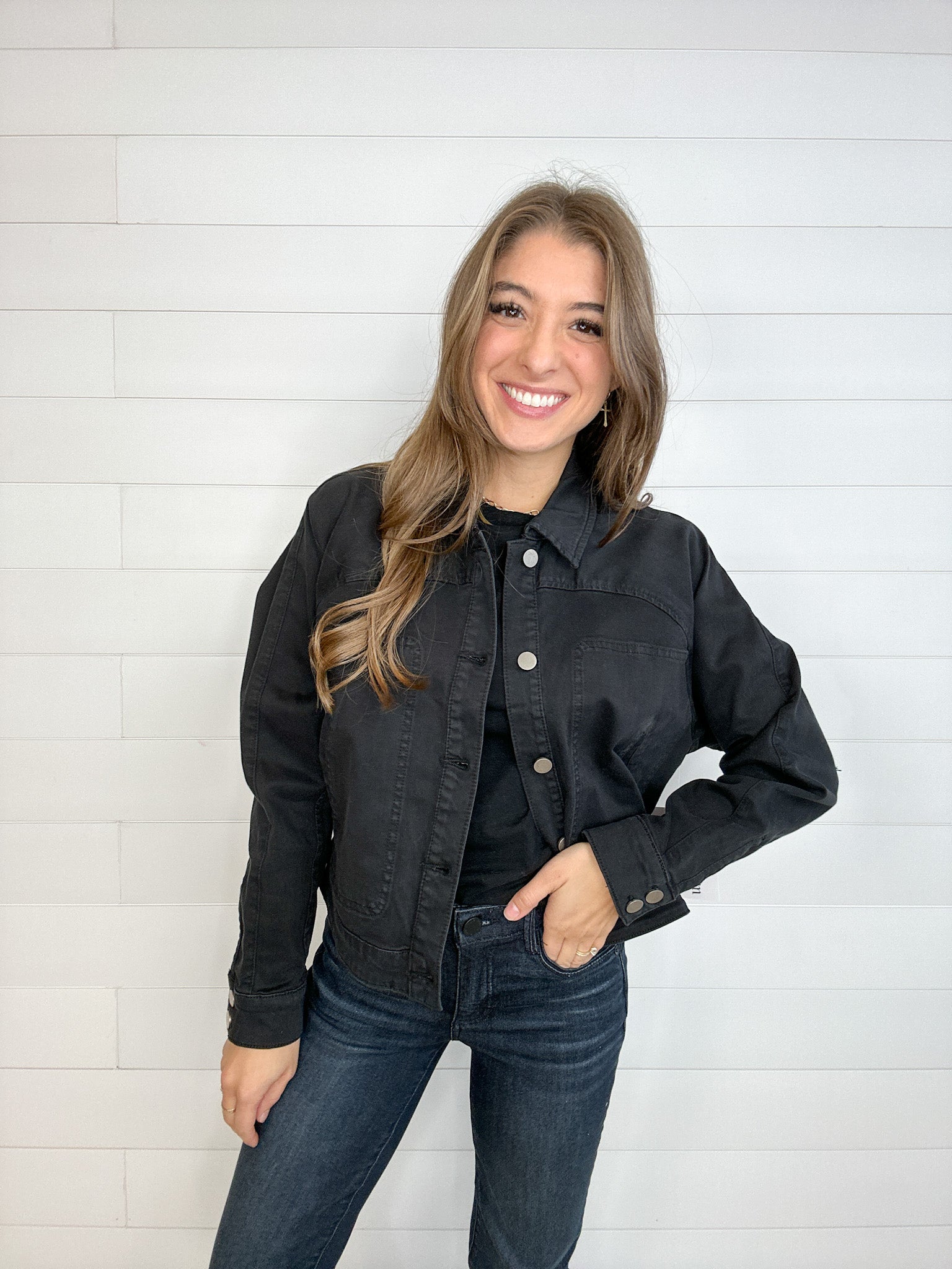 MB Long Sleeve Raglan Button Front Jacket