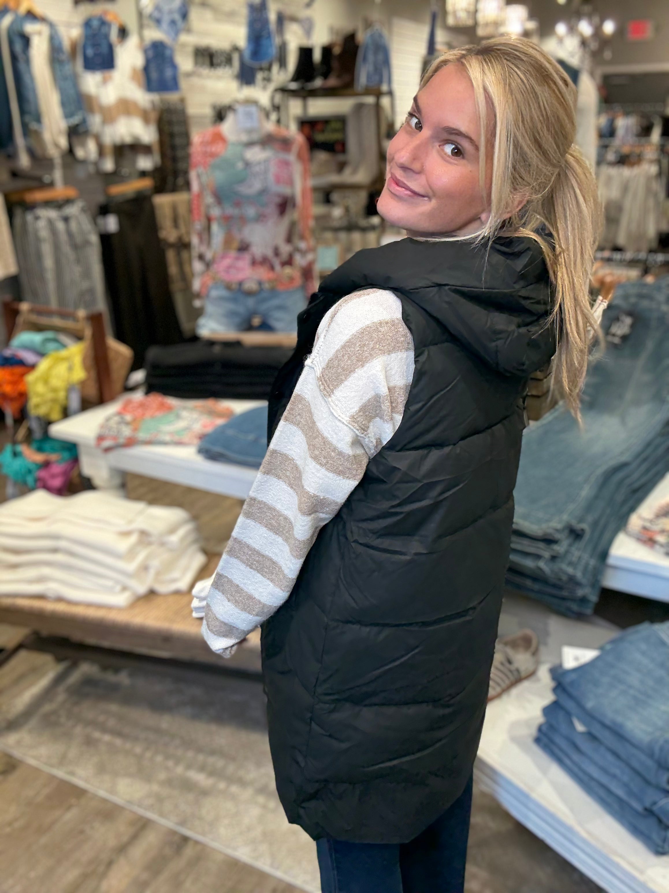 Hooded Long Quilted Puffer Vest