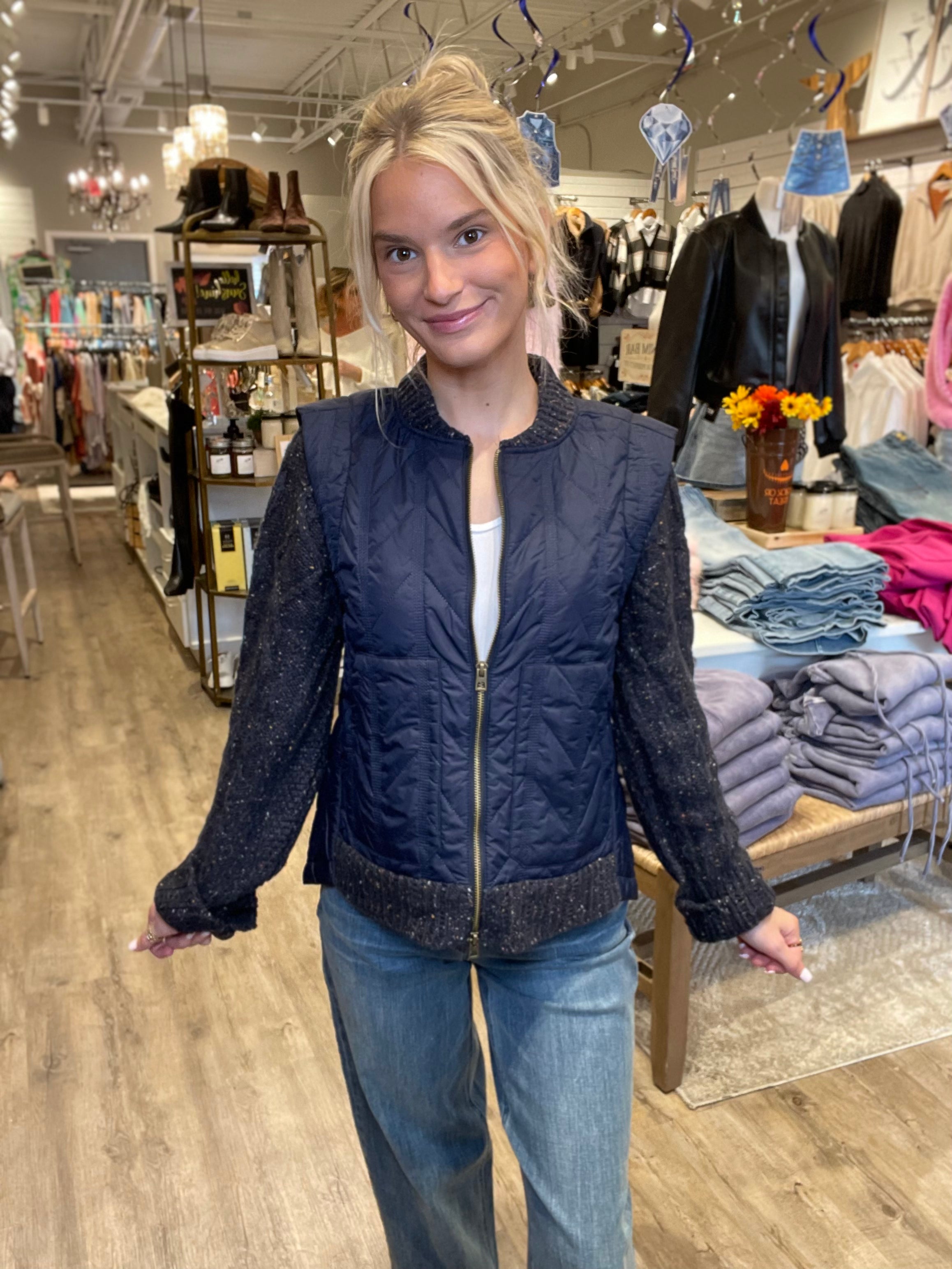 Zip front quilted jacket