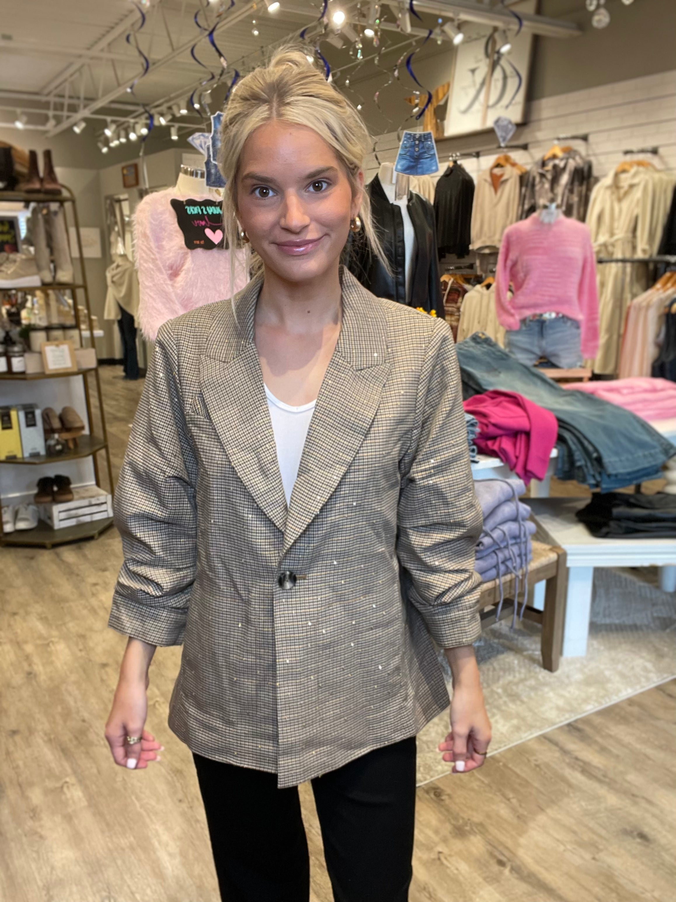 Ruched Sleeve Blazer w/rhinestones