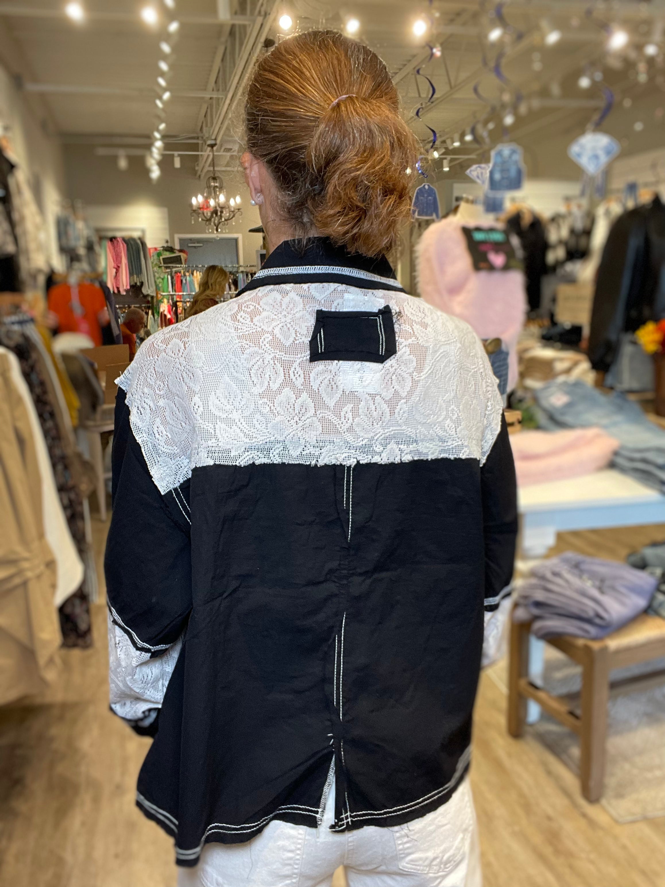 Denim & Printed Woven Mix With Raw Edge Jacket