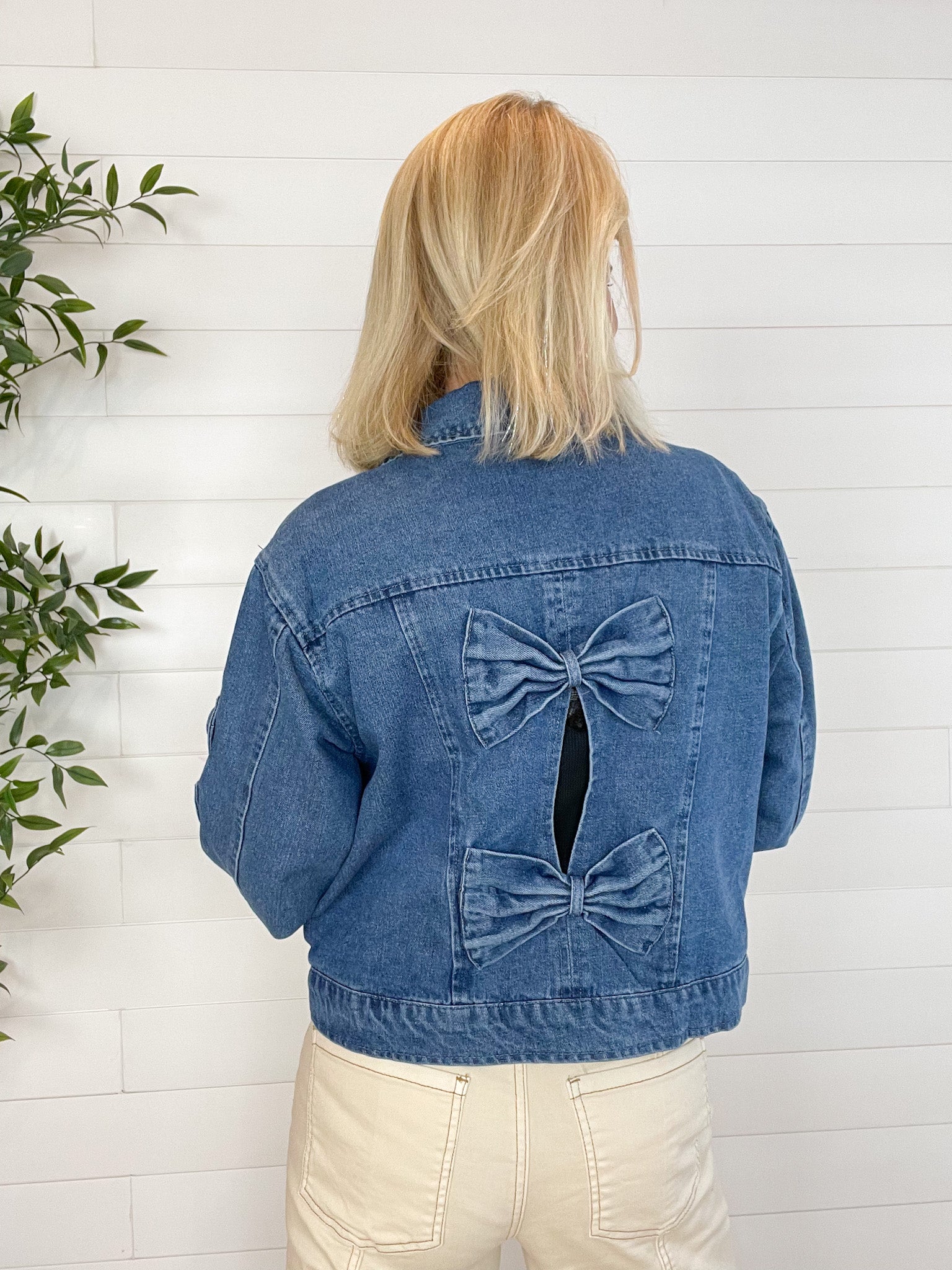 Cropped Bow Denim Jacket