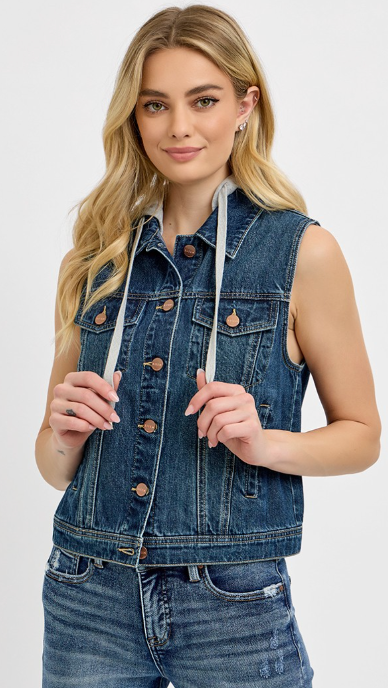 Denim Vest With Detachable Hoodie