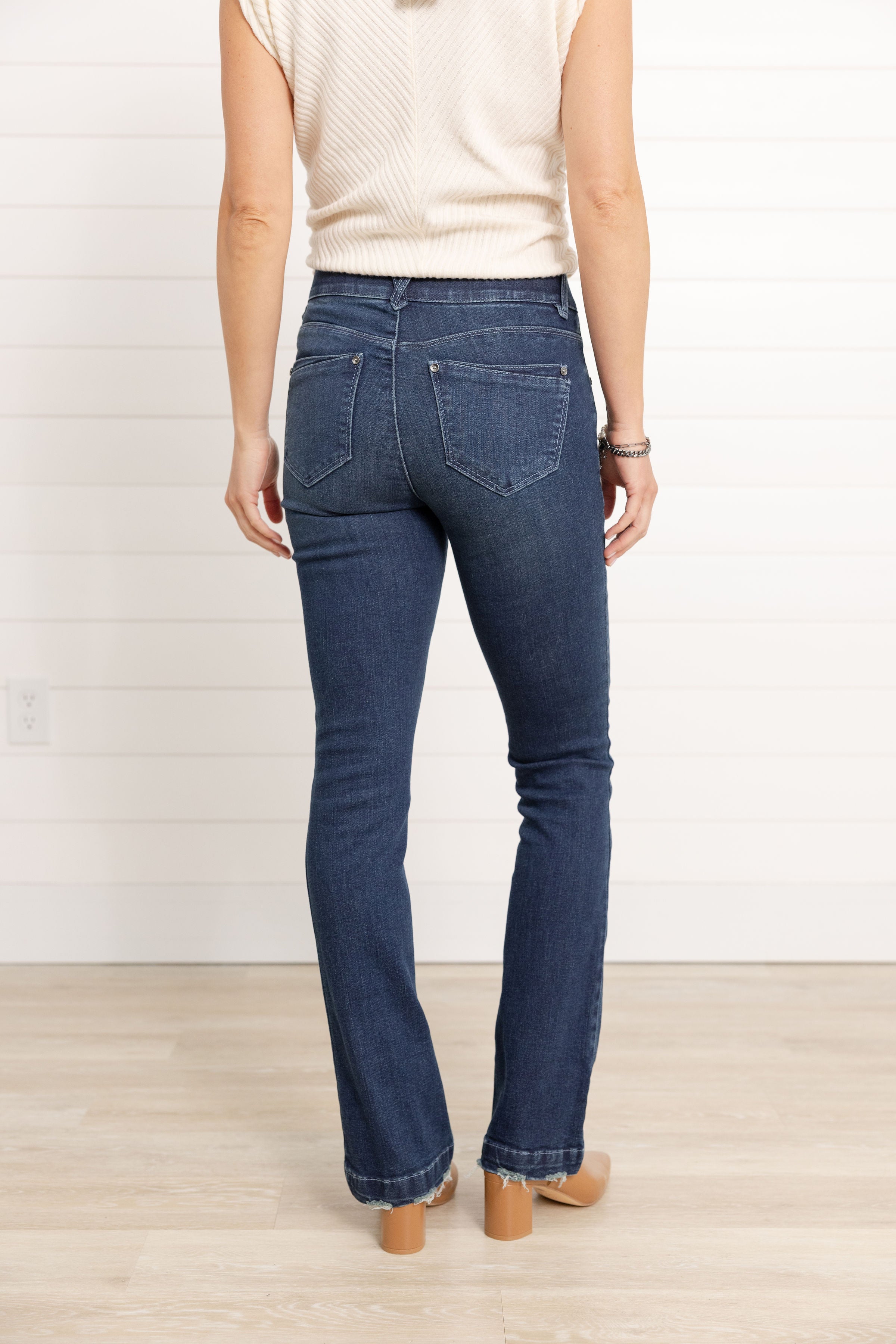 Subtle bootcut leg β slim through the thigh with a slight flare at the hem