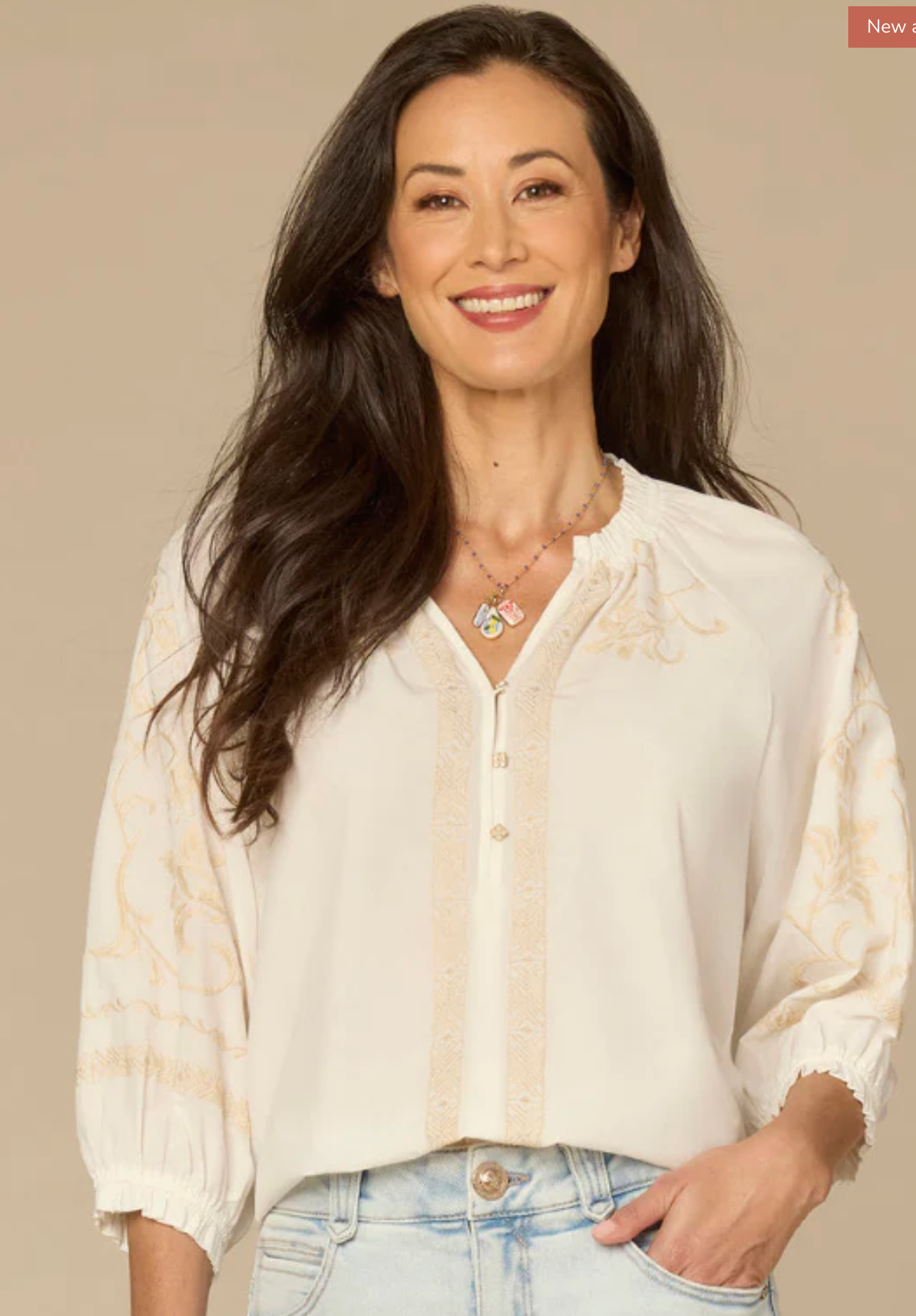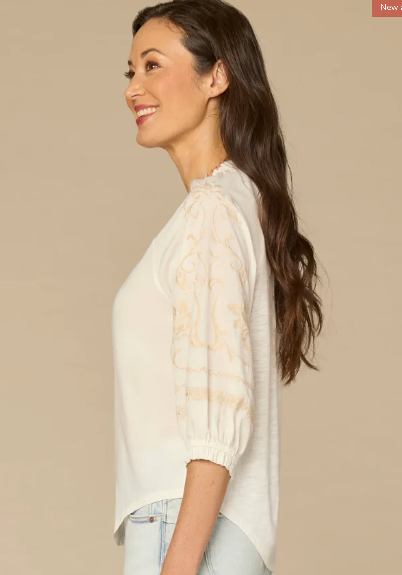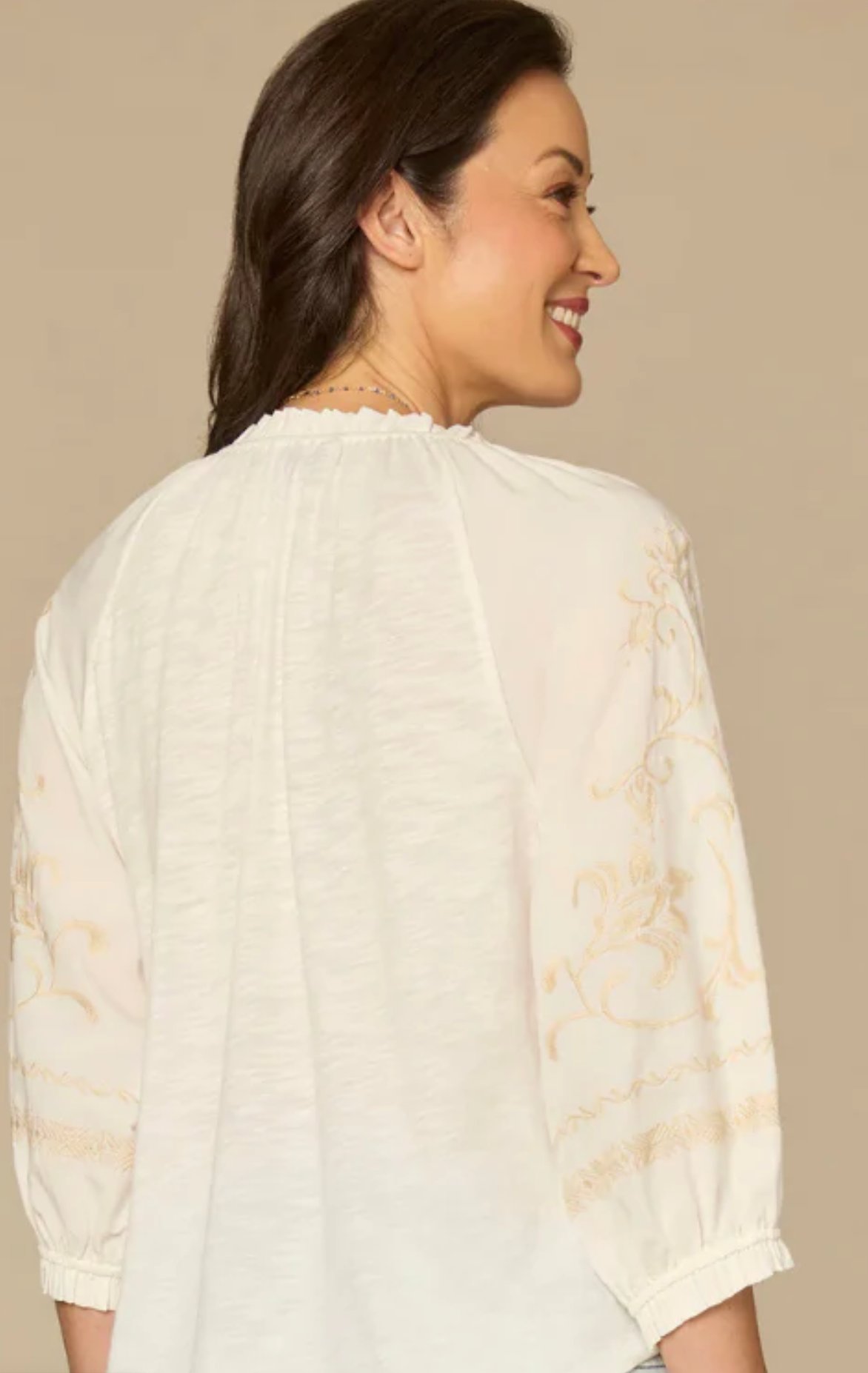 Soft ivory base with neutral embroidered detailing