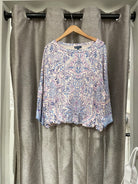 This dreamy printed top brings effortless charm to your everyday style. Featuring a flowy silhouette with a relaxed fit, this piece moves beautifully with you while the intricate blue and lavender-inspired pattern adds that “where did you get that?” factor. Lightweight and breathable, it’s one of those throw-on-and-go tops that still feels polished. Easy, flattering, and endlessly wearable — yes please.