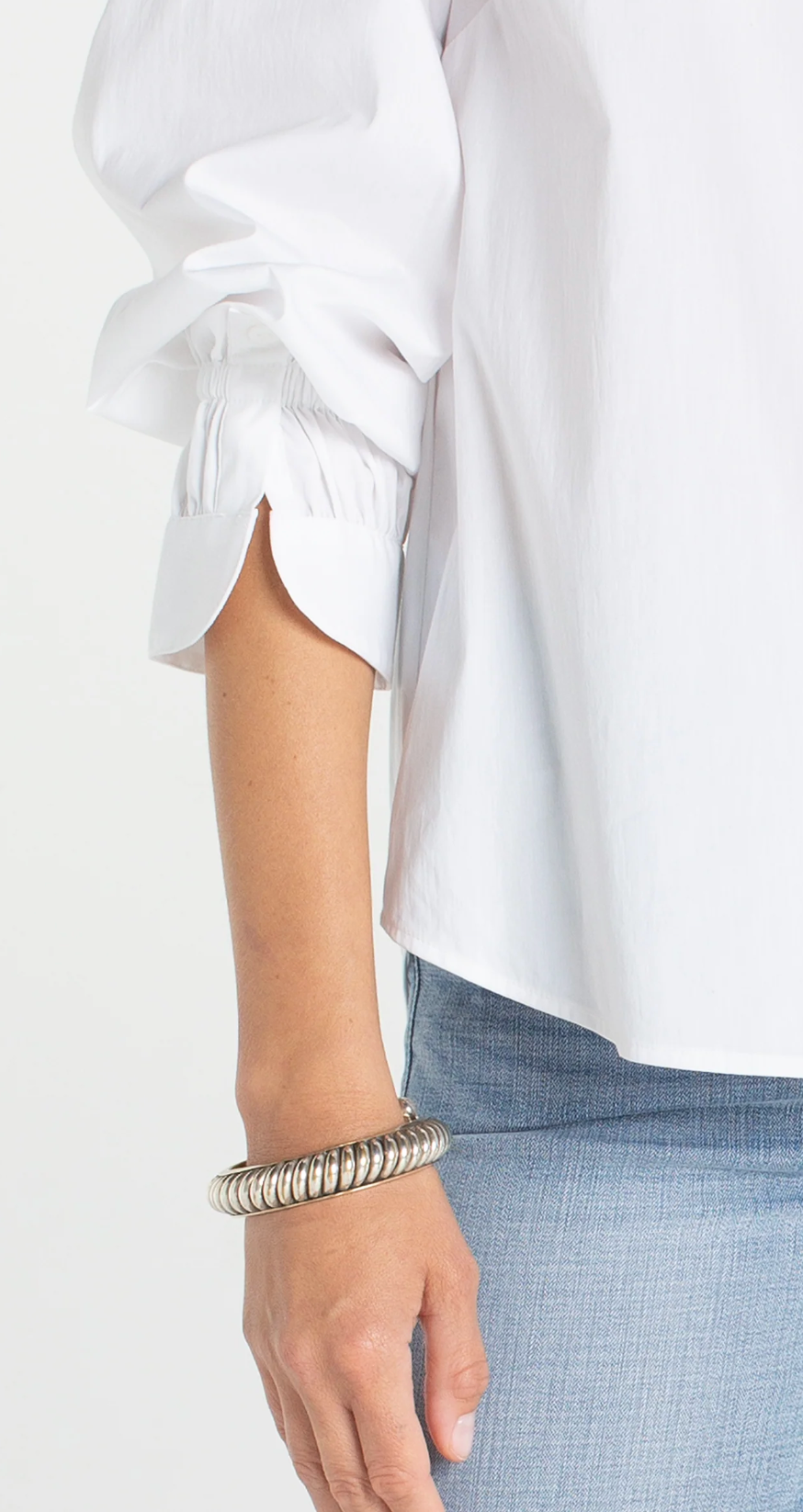 Crisp white hue that pairs effortlessly with denim, trousers, or skirts