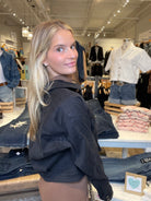 Layer up in style with this button-front jacket designed for comfort and polish. Crafted from soft stretch twill, it features a refined collar and structured raglan sleeves for a tailored-meets-relaxed vibe. A back pleat adds shape and movement, while spacious welt pockets keep it practical. Finished with sleek metal shank buttons, it’s the perfect blend of modern ease and timeless style.