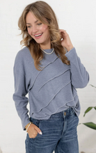Meet your new “throw-on-and-go” sweater with a little extra interest. This soft crewneck knit features modern diagonal layered panel detailing across the front for an elevated, flattering look—without sacrificing comfort. Easy to dress up with trousers or keep casual with denim.