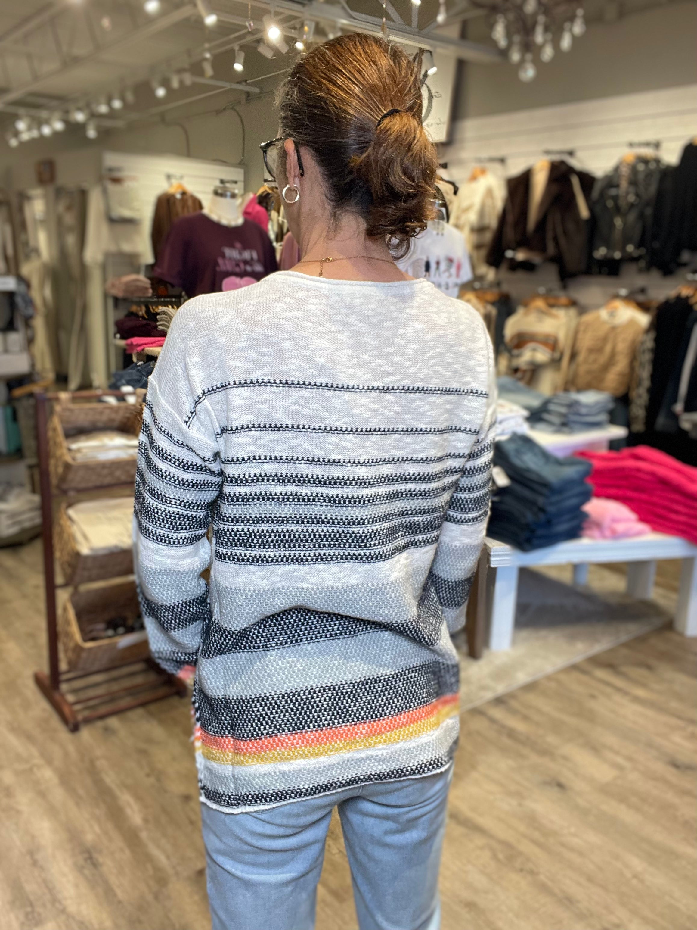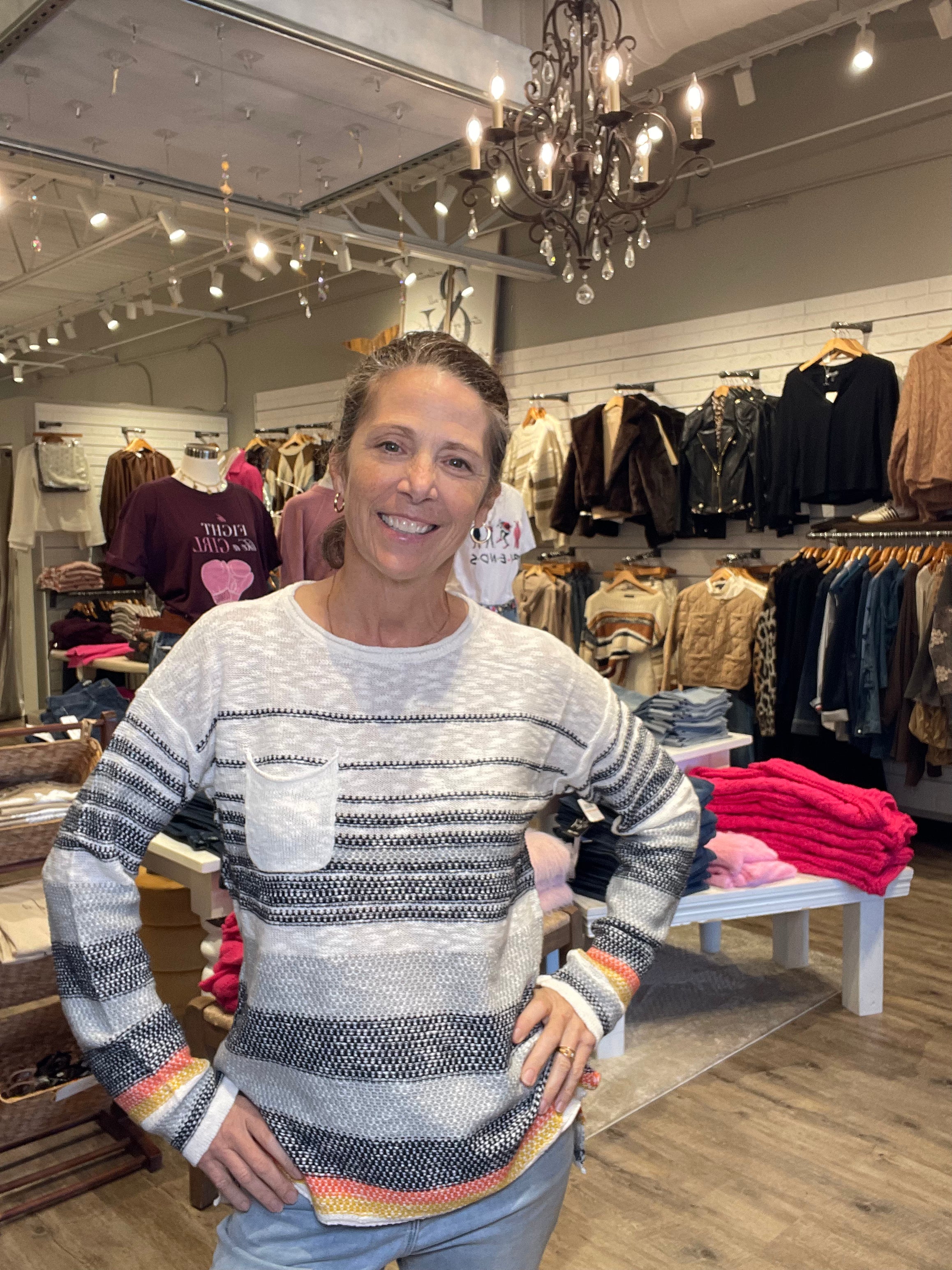 We’re loving this textured stripe sweater — the perfect pop of color to brighten your fall wardrobe. Pair it with your favorite denim for an easy, everyday look that’s anything but basic!