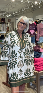 Bring effortless style to your day with this olive and cream boho tunic dress π