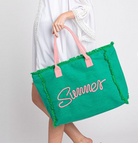 The Summer Oversized Canvas Tote is made for beach days, poolside lounging, weekend trips, and everything in between. Designed with a relaxed canvas feel and playful embroidered “Summer” lettering, this tote delivers both style and function in one easy carryall.