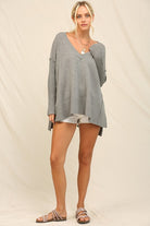 V Neckline With Ribbed Piercing Tunic Sweater