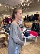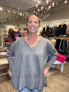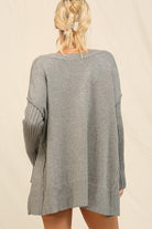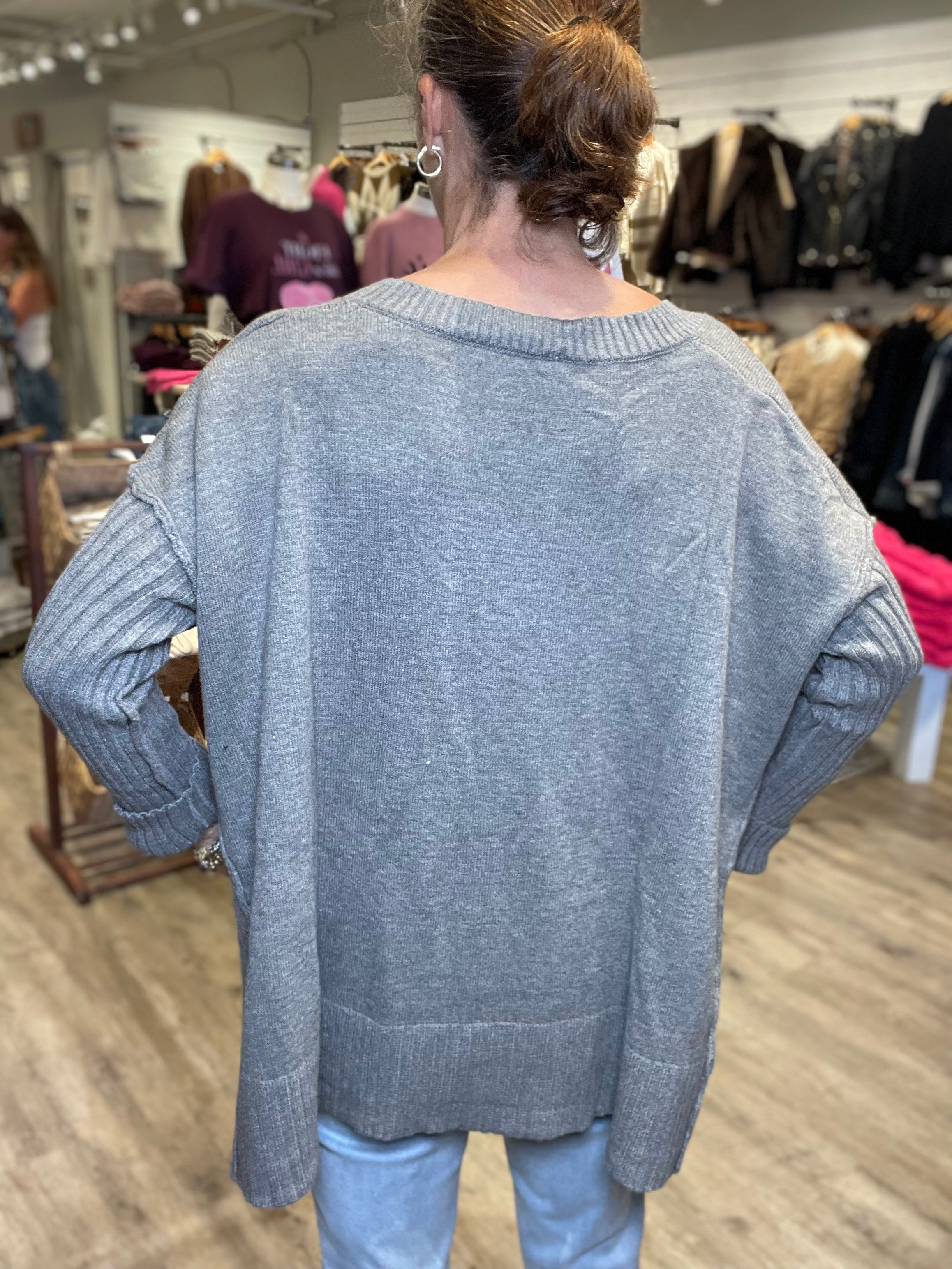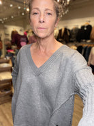 Ribbed Oversized V-Neck Sweater in Heather Gray