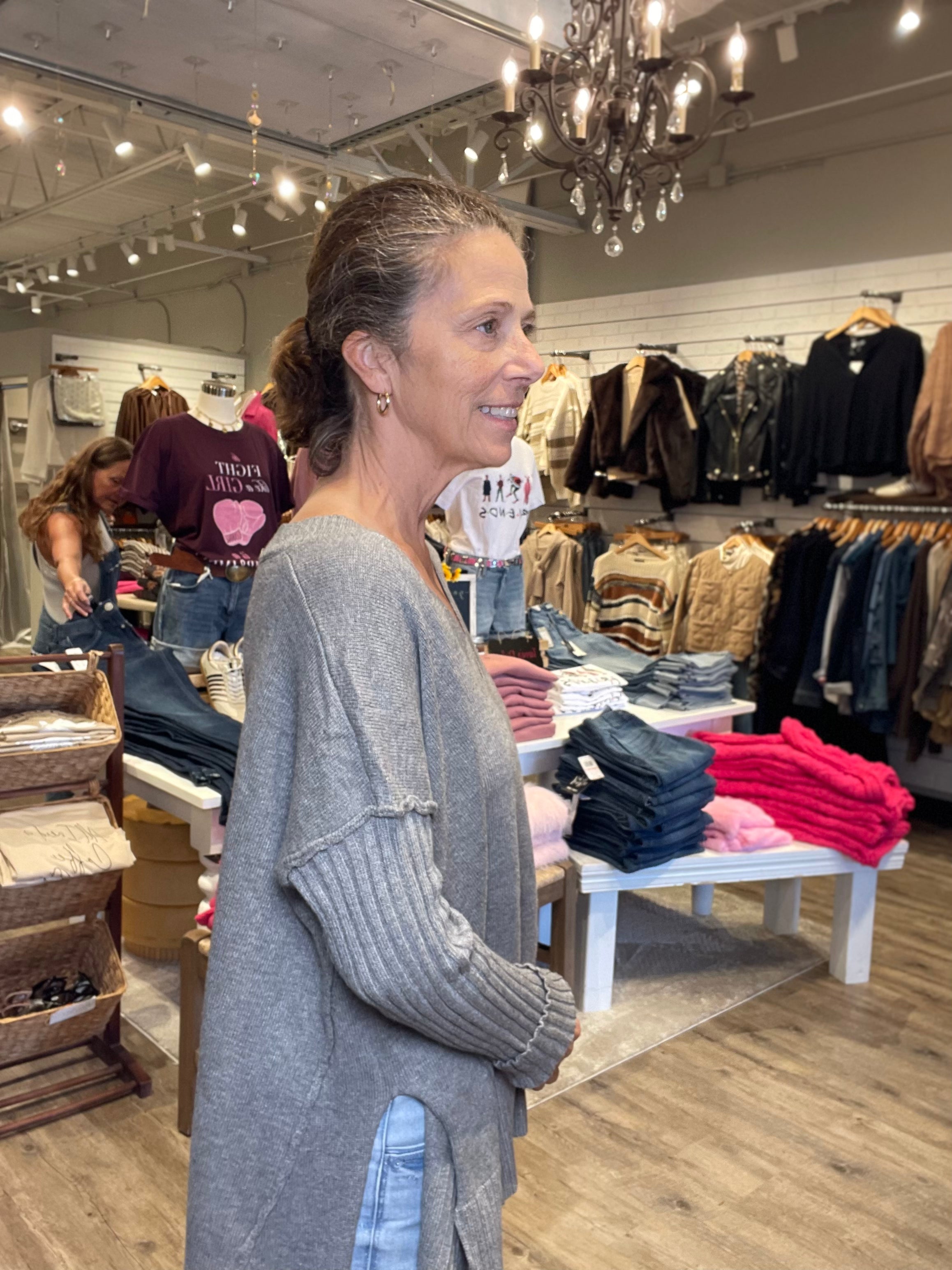 High-low hemline with side slits for easy movement and layering versatility