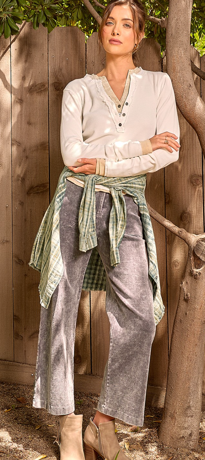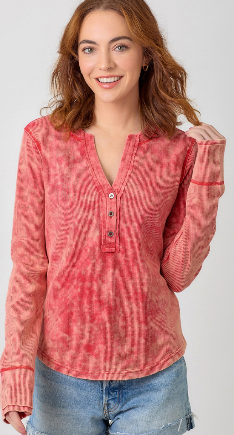 Washed Thermal Henley Top