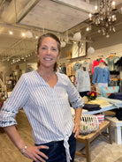 Yarn Dye Stripe V Neck Top