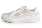 This is a fashion-forward white sneaker with metallic woven paneling and chunky detailing—ideal for elevating casual looks with a bit of shine and texture.